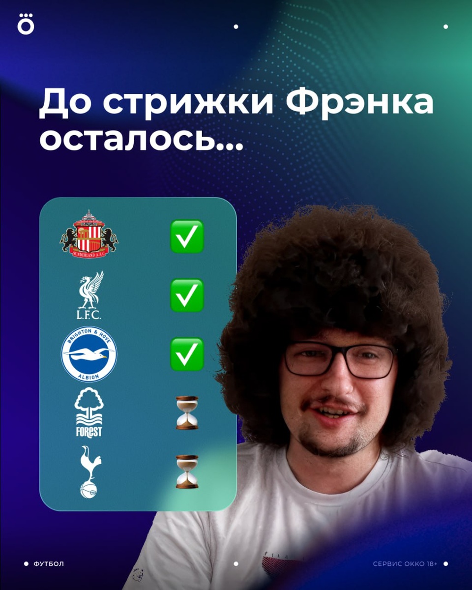 В ответ на пост 💈 Помнишь фаната «МЮ» Фрэнка? Поход к барберу всё ближе. Парням Аморима осталось всего две победы. В субботу матч против «Ноттингема». Далее — «Тоттенхэм». Верим в «Юнайтед»?