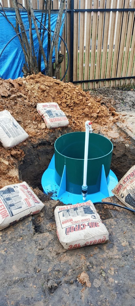 Обустройство скважины кессоном. Два выхода, летний полив.