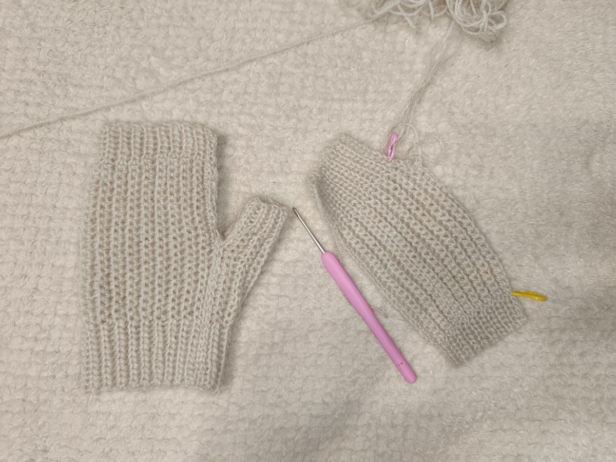 Вяжу митенки из Alize Angora Gold крючком 2,5 мм🩷 первую связала пару недель назад 🍂пришло время для второй