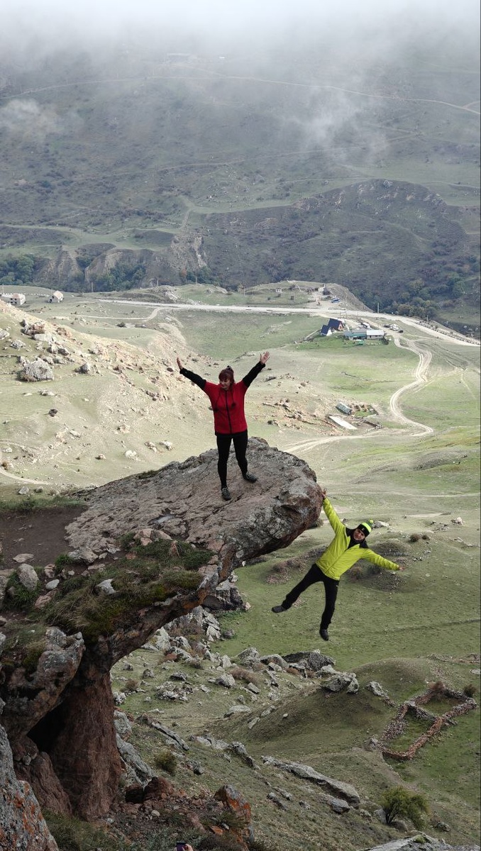 Поездка на Кавказ — октябрь 2025 Мы развлекались как могли 🤭 Отвезла ребят на безенгийский «Язык тролля». Столько раз была на Кавказе, а в этой локации — впервые. Весь путь нас окружал туман, и когда мы подъехали — туман на пару минут отступил, открыл долину и позволил устроить маленькую фотосессию. Через пять минут снова всё ушло в молоко. Для одного - фото на скользком и опасно накренённом камне — это бодрость, заряд энергии и восторг. Для другого — экстремальный тест на смелость, легкий инфаркт и бонусный выброс адреналина 😅. Были и академические наблюдатели: фотографировали сверху, с безопасной дистанции, через объектив и сарказм. Язык Тролля — это скальный выступ, внешне похожий на язык мифического северного монстра. Самый известный —, конечно, в Норвегии, но зачем лететь так далеко и тратить гору денег, если у нас на Кавказе есть свой маленький «тролль»? 😉 «Язык Тролля» в Безенгийском ущелье (респ. Кабардино‑Балкария) — компактная, но эффектная смотровая точка с панорамой