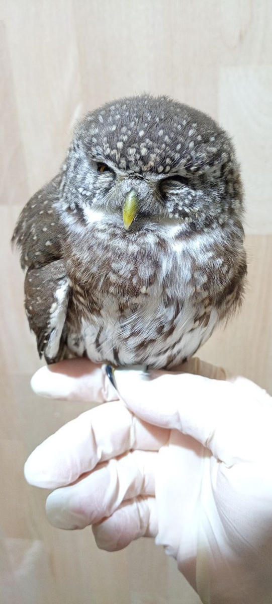 А кому эксклюзивного контента, только в телеге, только пока у Лены есть время в перерыве между экзаменами? 😎 Сычик из поста выше — во многих смыслах маленькое чудо. Приехал он в ноябре 24-го года. Воробьиные сычи — птицы очень нежные, и выживаемость у них в неволе достаточно низкая. Этот сыч приехал — вы себе это просто представьте — стреляным. У него сломанных костей было чуть ли не больше, чем целых. Подробностей я уже не помню, но оба крыла точно. Я вообще не надеялась на то, что у такой малявки с такой травмой есть хоть какие-то шансы выжить. А он взял и выжил. Фотографии расположены по порядку, первая сделана на следующий день после поступления, последняя — незадолго до того, как птица перебралась в Красилово. Тот случай, когда я лечила птицу либо без фиксации совсем, либо за шею, завернув в тряпочку, потому что все ниже шеи было переломано, не схватишься. А сопротивляться лечению этот крошечный боец начал очень и очень быстро.