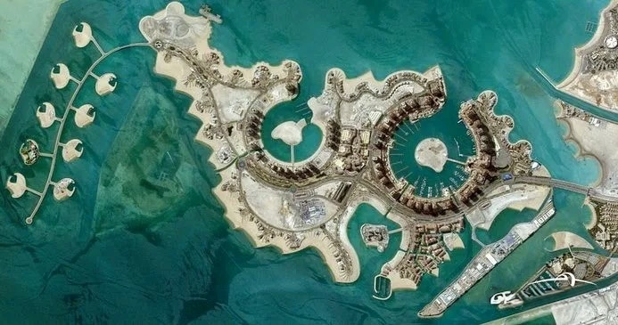 Искусственный остров в Дохе простирается на 32 километра вдоль Персидского залива, напоминая нитку жемчуга. Его создание — это впечатляющий пример человеческих возможностей. Просто подумать, что можно возвести целый остров с такими масштабными сооружениями! Остров делится на три основных района. Начну с района Qanat Quartier. Это место — находка для туристов. Фотографии здесь получатся, как будто вы побывали в Европе. Венецианские каналы, яркие дома, уютные пешеходные мостики, бутики и рестораны — всё это создаёт настоящую атмосферу Европы. Из развлечений можно выделить часовые прогулки по району и создание красивых фотографий. Также можно покататься на лодке по каналу. Цена отталкивает — 6000 рублей за аренду лодки на час, независимо от количества пассажиров. Мы выбрали ароматный кофе с местными финиками и наслаждались видами. Цены в кафе на набережной высокие, но рядом есть продуктовая лавка, где кофе стоит всего 150 рублей. Там можно купить что угодно к напитку. В лавке есть столи