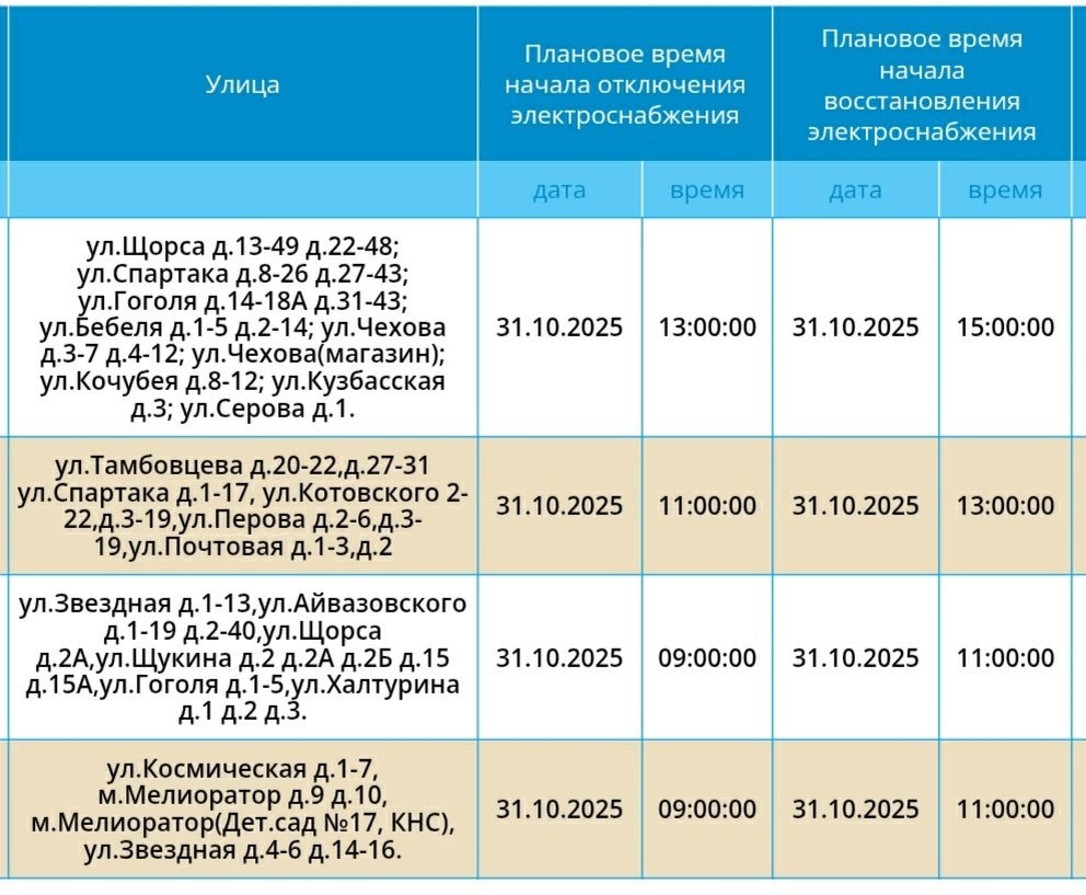 Точнее электричества ☝Да, завтра, но только на некоторых улицах по паре часов. Жители, проживающие по указанным адресам, имейте в виду