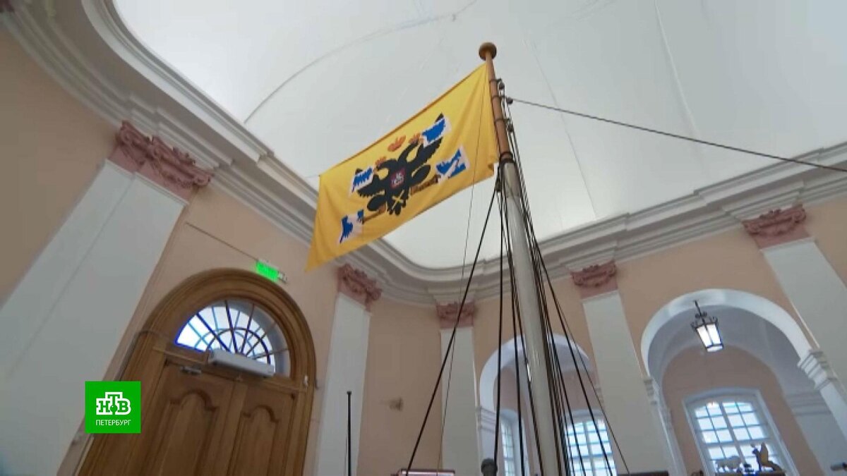[ Смотреть видео на сайте НТВ ] День основания Российского Военно-морского флота отмечают сегодня. В Петропавловской крепости на Соборной площади торжественно презентовали воссозданные по старинным образцам императорский судовой штандарт и гюйс. Долгое время копию ботика Петра I украшали обычные флаги расцвечивания. Однако, изучая исторические изображения, специалисты выяснили, что при царе над ботиком реяли всего два флага. Поэтому было решено восполнить геральдический пробел и воссоздать утраченные символы. Георгий Вилинбахов, государственный герольдмейстер, заместитель генерального директора Государственного Эрмитажа: «Был орел государственный, он был дополнен изображениями карт морей, которыми государство омывается. Сначала там было три моря и одна лапа была свободна, а затем присоединилось четвертое море, то есть Балтийское. Поэтому в петровское время случайных вещей не было — все символы имели свое значение». Судовой штандарт находится на главной мачте. Флаг представляет собой же