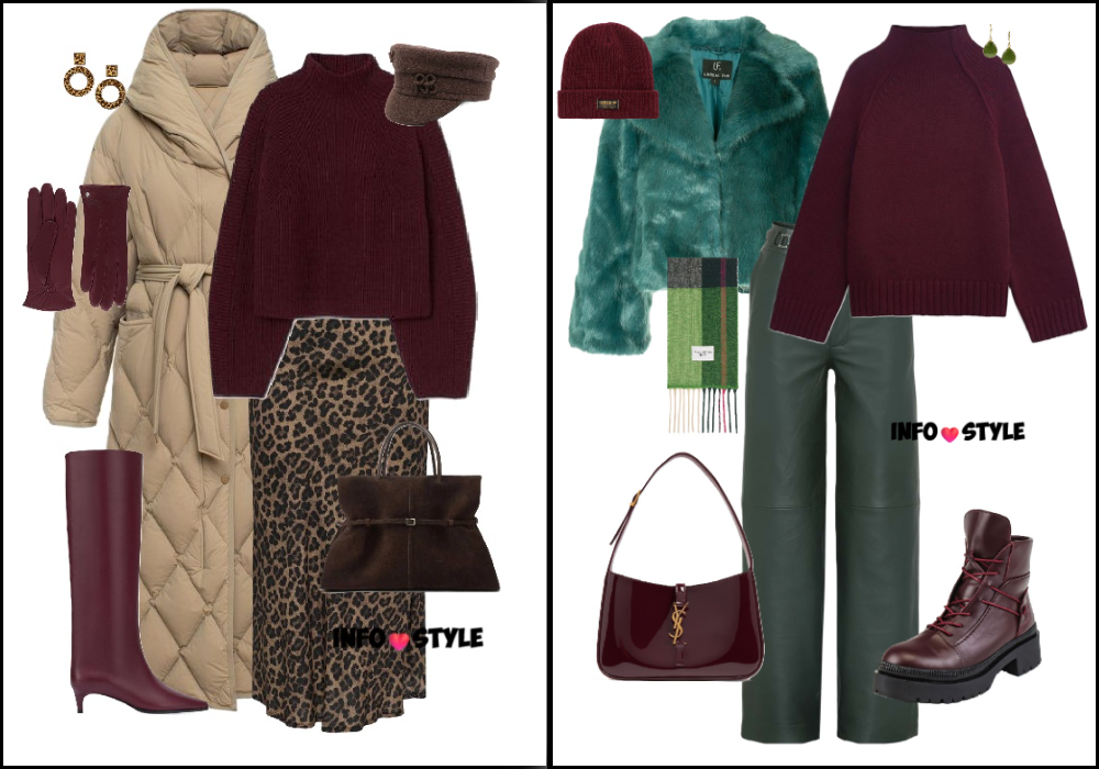 Всем привет! Благодарю, что заглянули на канал. Рубрика: знаменитости и жизнь На канале 👉ТГ👈 много интересных подборок🔥 Среди огромного количества трендовых моделей женских свитеров (читайте - джемперов, пуловеров, кардиганов и прочих трикотажных и вязаных кофт) особое место занимает свитер бордового цвета, ставший настоящим хитом осенне-зимнего гардероба. Бордовый свитер на самом деле универсальная и при этом выразительная вещь, способная превратить любой образ в настоящий модный хит. Благородные оттенки бордового цвета идеально подходят как для повседневной носки, так и для создания более элегантных аутфитов. Главное - знать, с чем его сочетать, чтобы подчеркнуть индивидуальность и выделиться из толпы. Серый+бордовый - многие модницы выбирают именно это сочетание в одежде! Серое пальто и брюки выступают идеальным фоном, подчеркивая насыщенный оттенок бордового свитера. Дополняют образ бордовые аксессуары: сумка, ботильоны и перчатки, что делает образ завершённым и утончённым. Зол