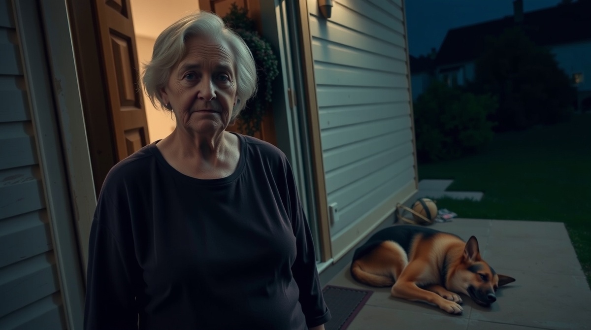 На земле лежала немецкая овчарка. Её тело было спокойным, глаза закатывались, дыхание — тяжелым, тихим, прерывистым. Рядом — небольшая тёмная лужа, кровь, заметная в тусклом освещении. Собака излучала непривычное спокойствие. Тяжелое дыхание медленно поднимало и опускало её живот, создавая тихий ритм, наполненный болью и безнадёжностью.