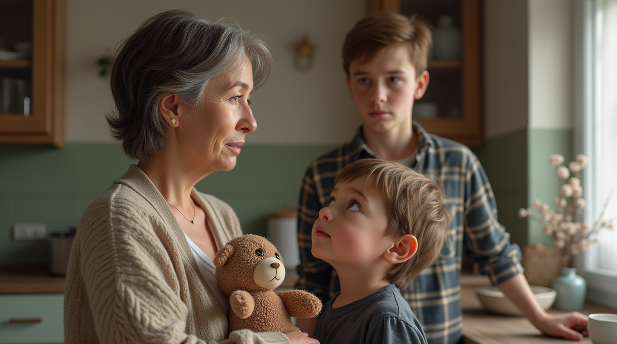 Первое утро началось с хаоса. Костик не хотел вставать, Миша не мог найти учебники, на кухне подгорела каша. Варвара металась между комнатами, одновременно пытаясь успокоить младшего, помочь старшему одеться и спасти завтрак. Телефон разрывался — школьная медсестра требовала новые справки для Миши, классная руководительница Костика интересовалась, почему мальчик третий день подряд приходит в мятой рубашке.