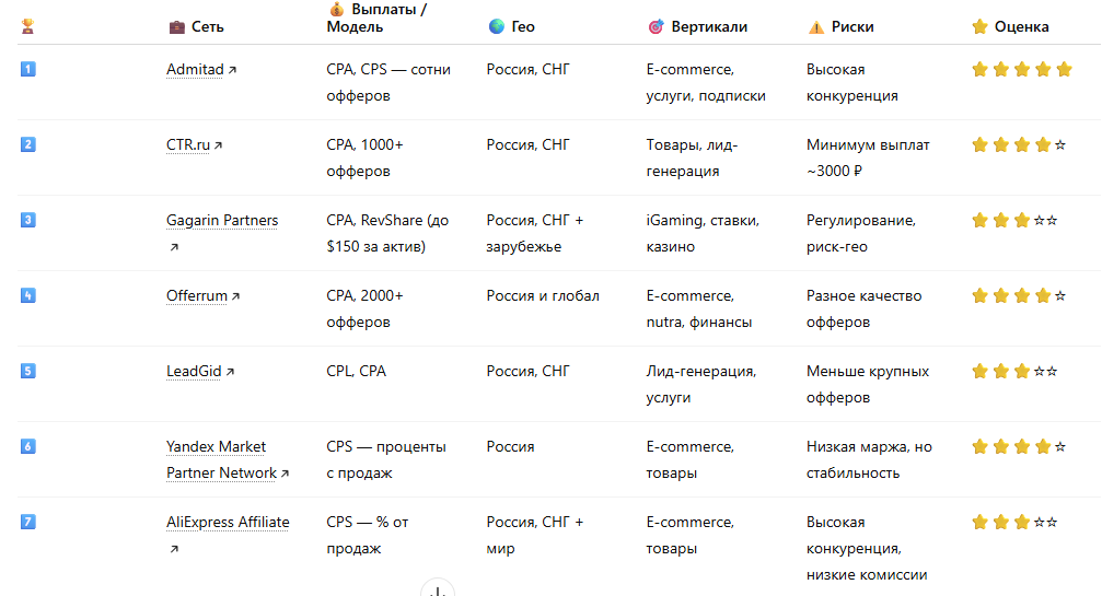 Минусы: минимумы выплат, возможно больше ручной работы по мониторингу офферов. Сеть, ориентированная на iGaming (ставки, казино) для русскоязычного рынка.