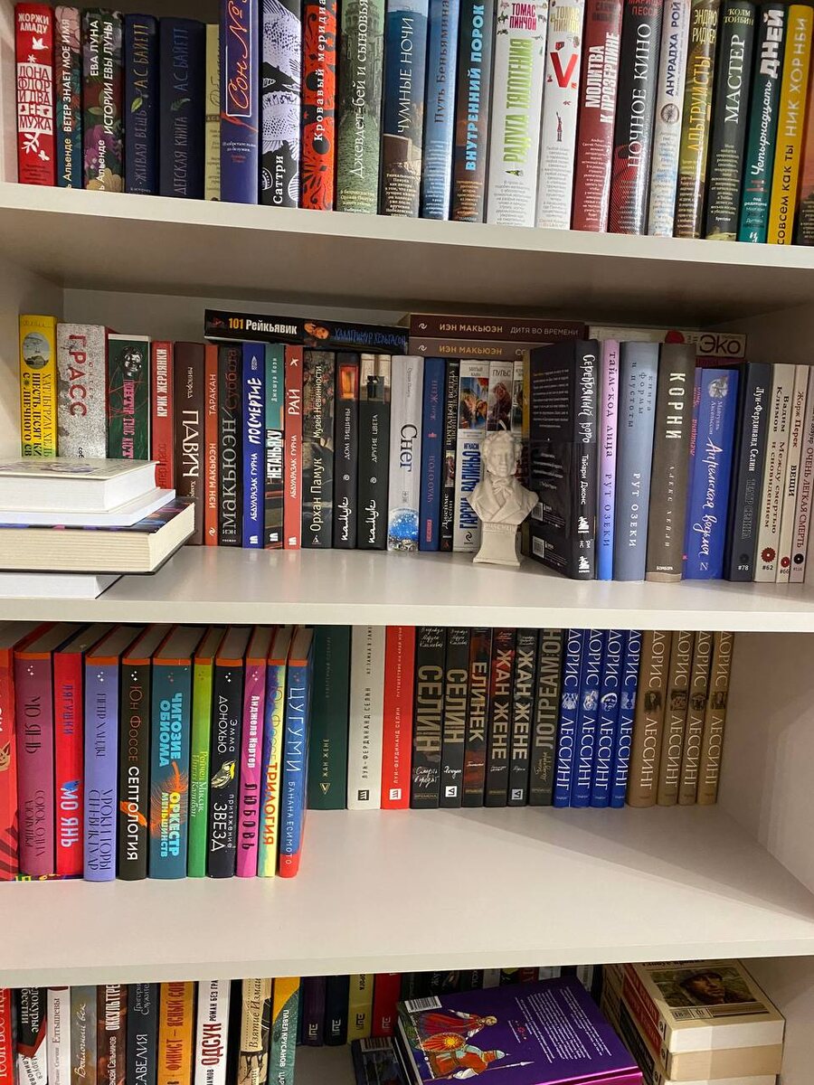 Весь вечер занималась перестановкой на центральных полках. Шкафы появились в июне, книги просто поставили, а вот расставить все красиво и по сериям руки дошли только сейчас. Если честно был, полнейший ужас. Не знала что где лежит, раньше я могла не глядя сказать какая полка и какая по счету нужная книга. Нравиться, что получается 💔 Особенно что непонятным мистическим образом появилось место для новых книг.