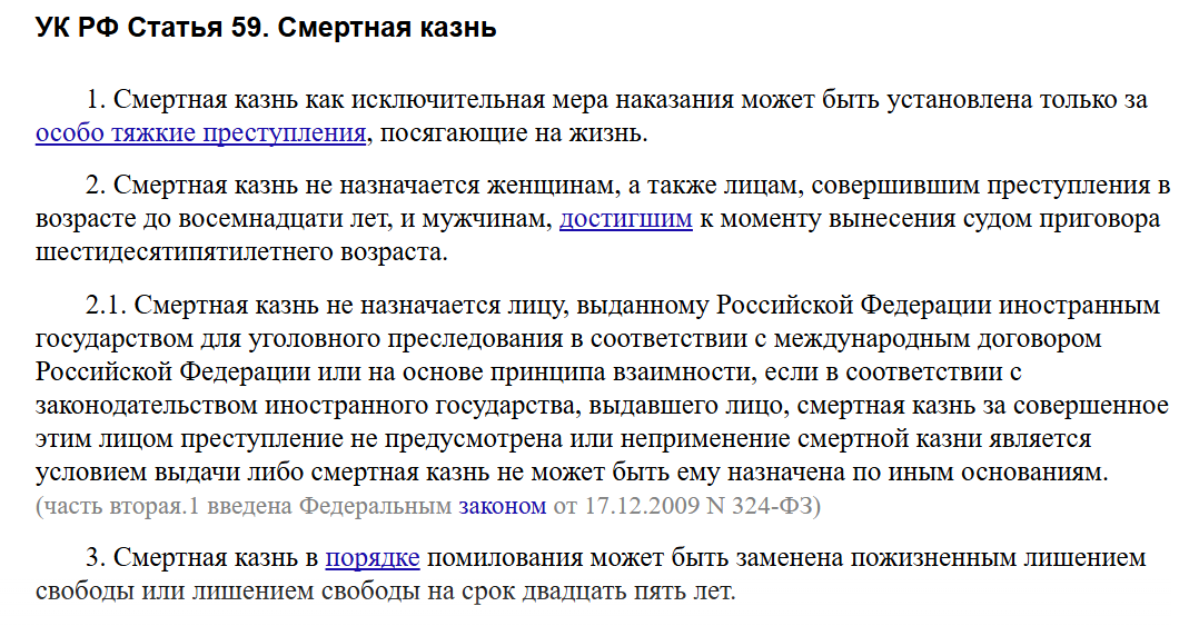 Итак, статья 59 УК РФ устанавливает порядок назначения наказания в виде казни.