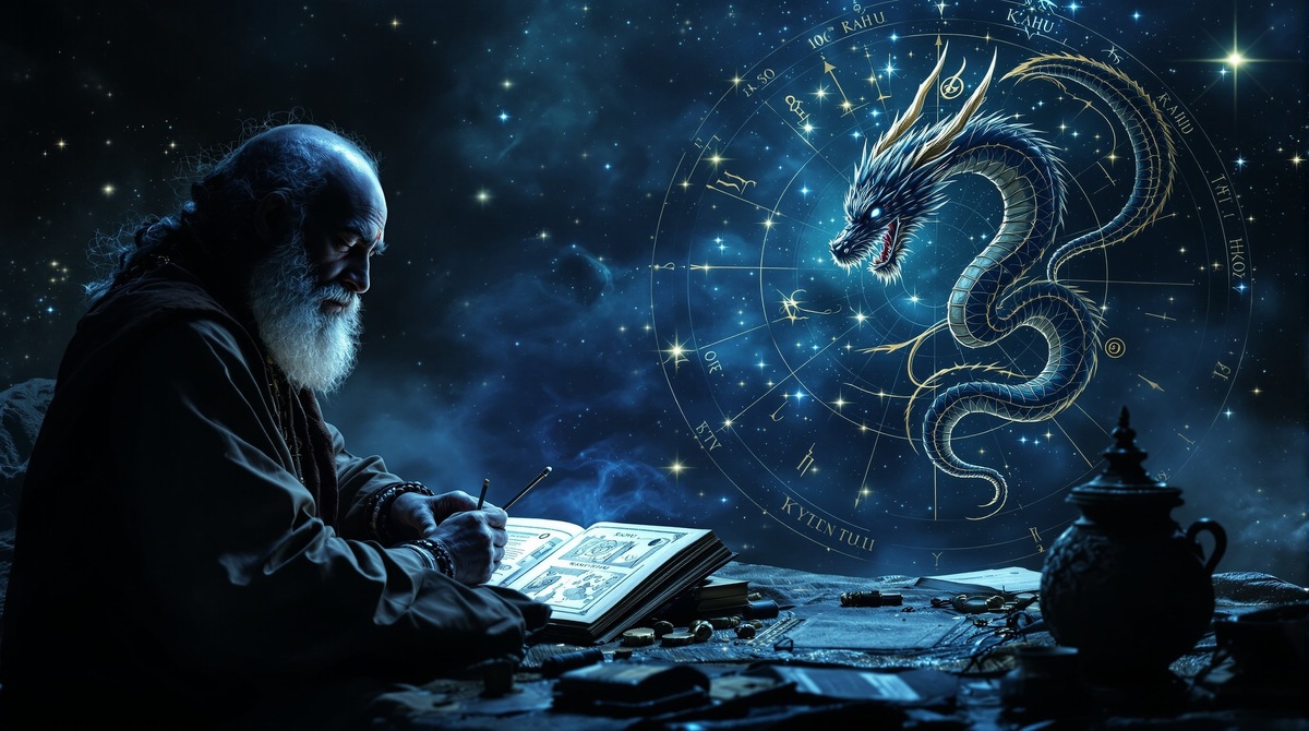 Есть в твоей натальной карте две точки, которые не являются планетами, но управляют твоей судьбой сильнее, чем любое небесное тело. Раху и Кету — это теневые планеты, математические точки пересечения лунной орбиты с эклиптикой, но в ведической астрологии они считаются главными индикаторами кармы. Северный узел и Южный узел. Голова дракона и его хвост. Желание и отречение. Будущее и прошлое.