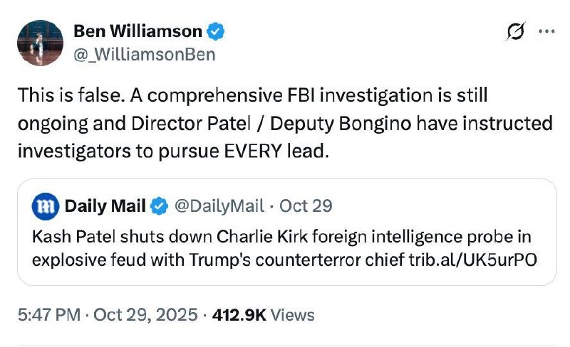 FBI clarifies they’re still looking into foreign intelligence ties to Charlie Kirk assassination