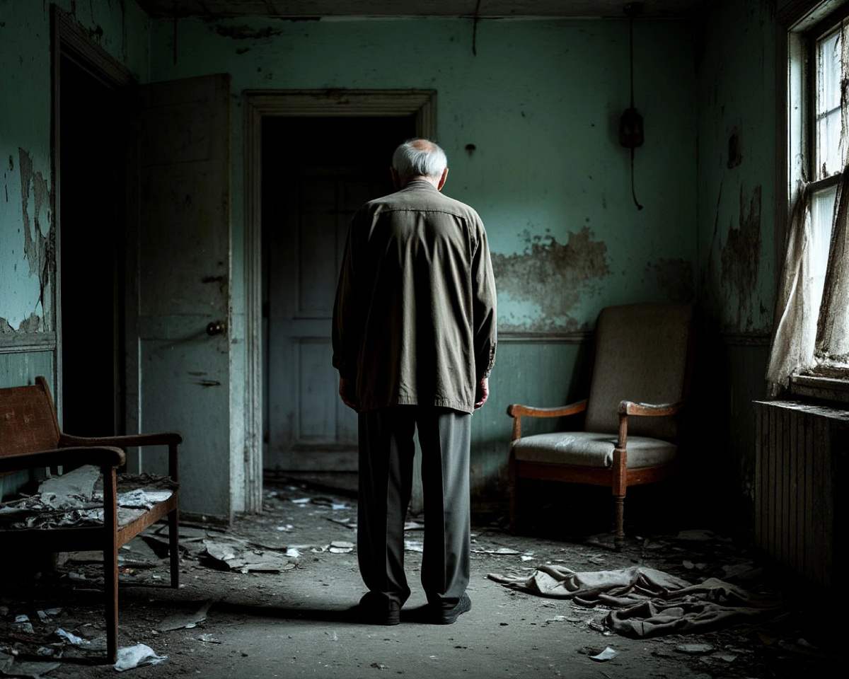 Человек стоял неподвижно. Опущенные плечи, сгорбленная спина. Клетчатый пиджак и помятые, грязные черные брюки. Голова наклонена вперед и видна большая залысина на затылке, в обрамлении седых волос. Он снова никак не отреагировал на луч фонаря. Дрожащий свет еще секунду освещал фигуру, а потом друзья не сговариваясь ринулись вон из комнаты. Сергей навел фонарь на дверь, Виктор отбросил стул и они со всех ног побежали по коридору. Спотыкаясь скатились по лестнице. Сергей, бежавший первым и освещавший путь, толкнул закрытые двери в коридор и они легко распахнулись. Их больше ничего не удерживало.