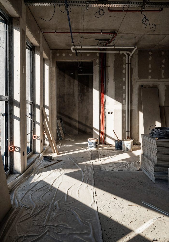 • Стяжка пола в новостройке: Часто застройщик сдает квартиры с "черновой" стяжкой, которая может иметь неровности. Для идеальной поверхности мы рекомендуем заказать полусухую стяжку пола. Она отличается высокой скоростью укладки, минимальным количеством воды (что снижает риск затопления соседей) и идеально ровной поверхностью, готовой к укладке любого финишного покрытия.