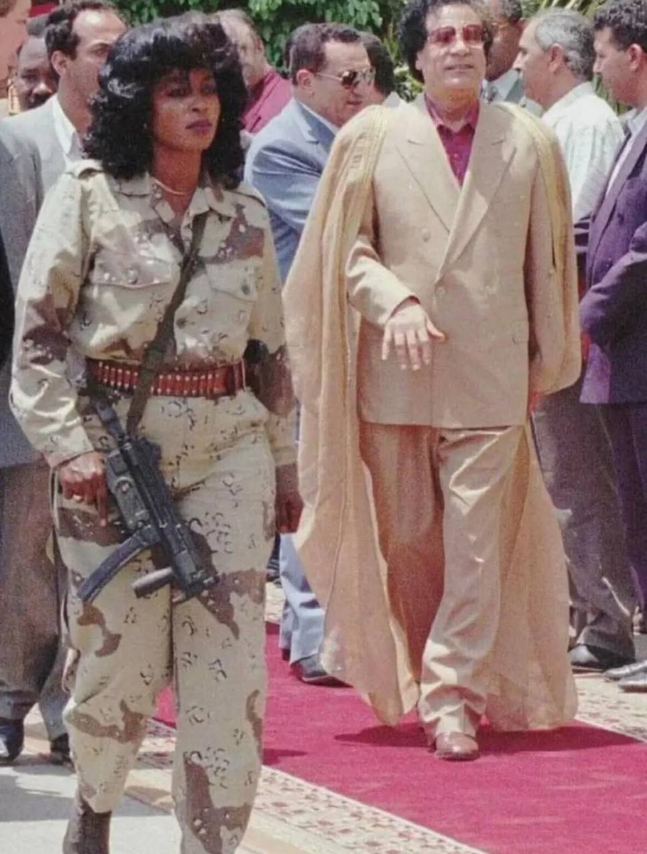 А вообще, наверное это был всё же имиджевый ход, сиятельная бутафория, окружить себя красивыми женщинами, да ещё вооружёнными до зубов. Всем прочим мировым лидерам и прессе было о чём посудачить и позавидовать, они такой возможности были лишены.