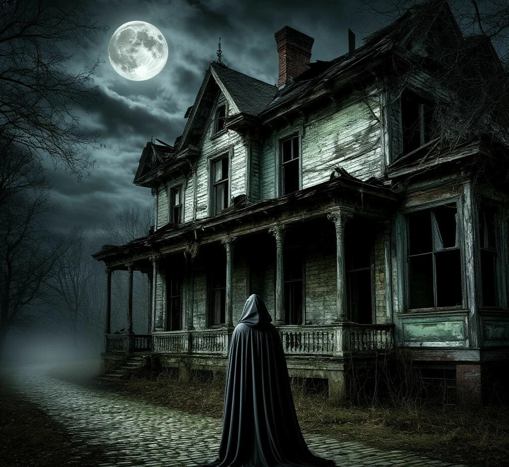Ночь Хэллоуина была холодной и мрачной. Луна, словно окутанная туманом, тускло светила сквозь густые облака. Молодая девушка Анна решила провести вечер в старом заброшенном особняке, расположенном на окраине города. Она слышала легенды о призраках, обитающих там, и хотела проверить их правдивость.