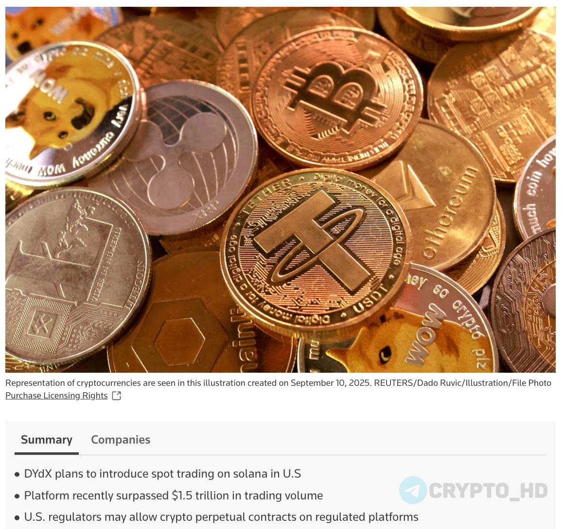 🇺🇸 Reuters: Биржа dYdX (#DYDX) планирует выйти на рынок США к концу 2025 года. Crypto Headlines