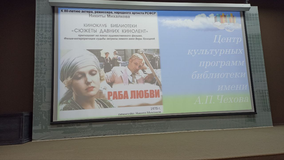 21 октября 2025 года актёру, режиссёру, народному артисту РСФСР Никите Михалкову исполнилось 80 лет. В честь юбилея Никиты Михалкова кино - клуб Таганрогской центральной городской публичной библиотекой имени А.П.Чехова 30 октября 2025 года организовал познавательное и увлекательное мероприятие. Ведущая - сотрудник библиотеки познакомила участников мероприятия с жизнью и творческим наследием Никиты Сергеевича. Его знают все жители России, и среди российских кинематографистов за рубежом он среди самых известных. Вспомнили его лучшие фильмы и роли. За свою долгую карьеру Никита Михалков создал более 30 фильмов. Его режиссёрский дебют состоялся в 1974 году с фильмом «Свой среди чужих, чужой среди своих». Но Никиту Михалкова – документалиста знают меньше. И я в том числе. Документальные фильмы Никиты Сергеевича не менее неординарные и захватывающие, чем художественные. Их тоже немало. Ведущая встречи – сотрудник библиотеки обратила внимание на три проникновенных документальных фильма Никиты