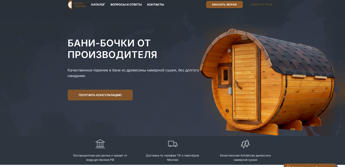 На главной странице teplo-bochka.ru можно увидеть стандартные рекламные обещания: «Быстрая доставка», «Качественные материалы», «Гарантия на все изделия». Но за этими громкими словами — пустота.