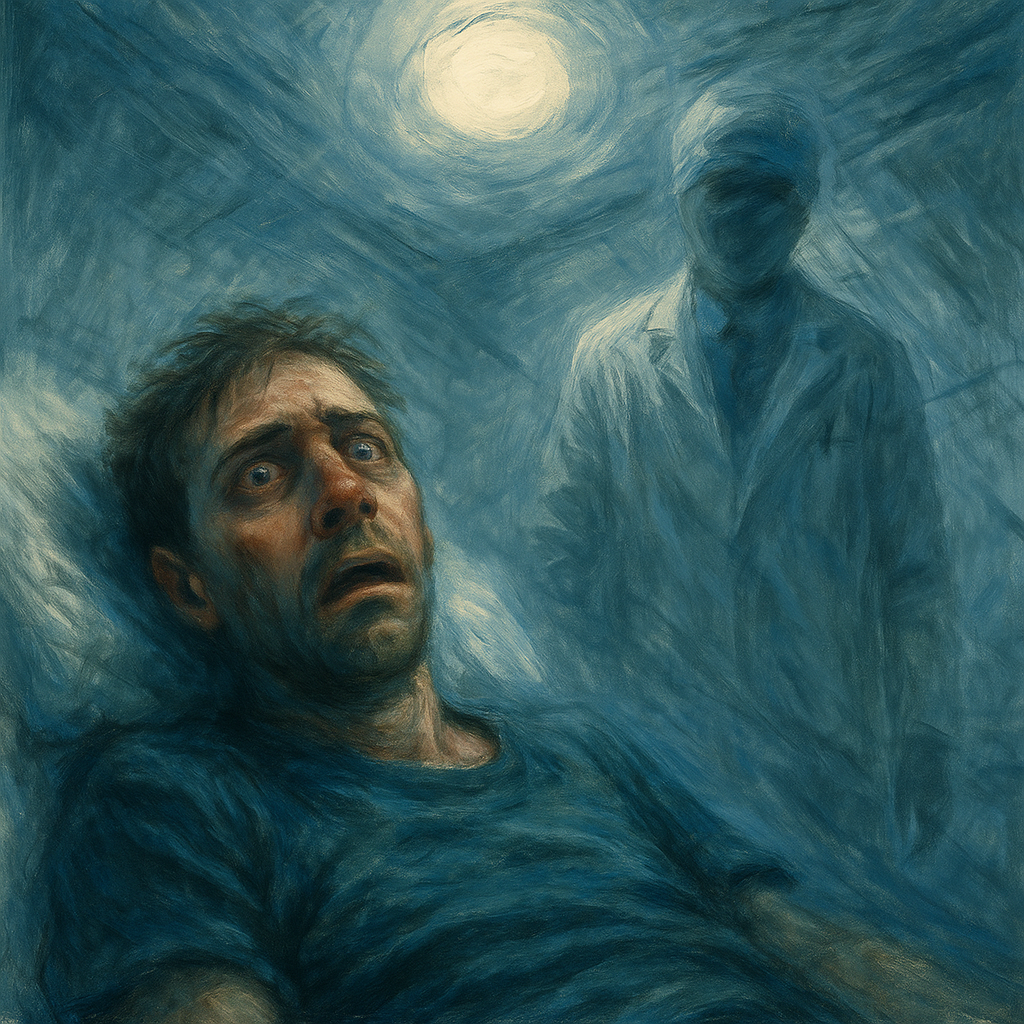 Тишина. Голубой свет. Что-то тикает. Надо мной девушка… Нет… Скорее не девушка… Но костюме медсестры. Тонны косметики, ярко-красный рот, белые лошадиные зубы. Огромные ногти сверкают радугой, в руке бутафорский шприц.