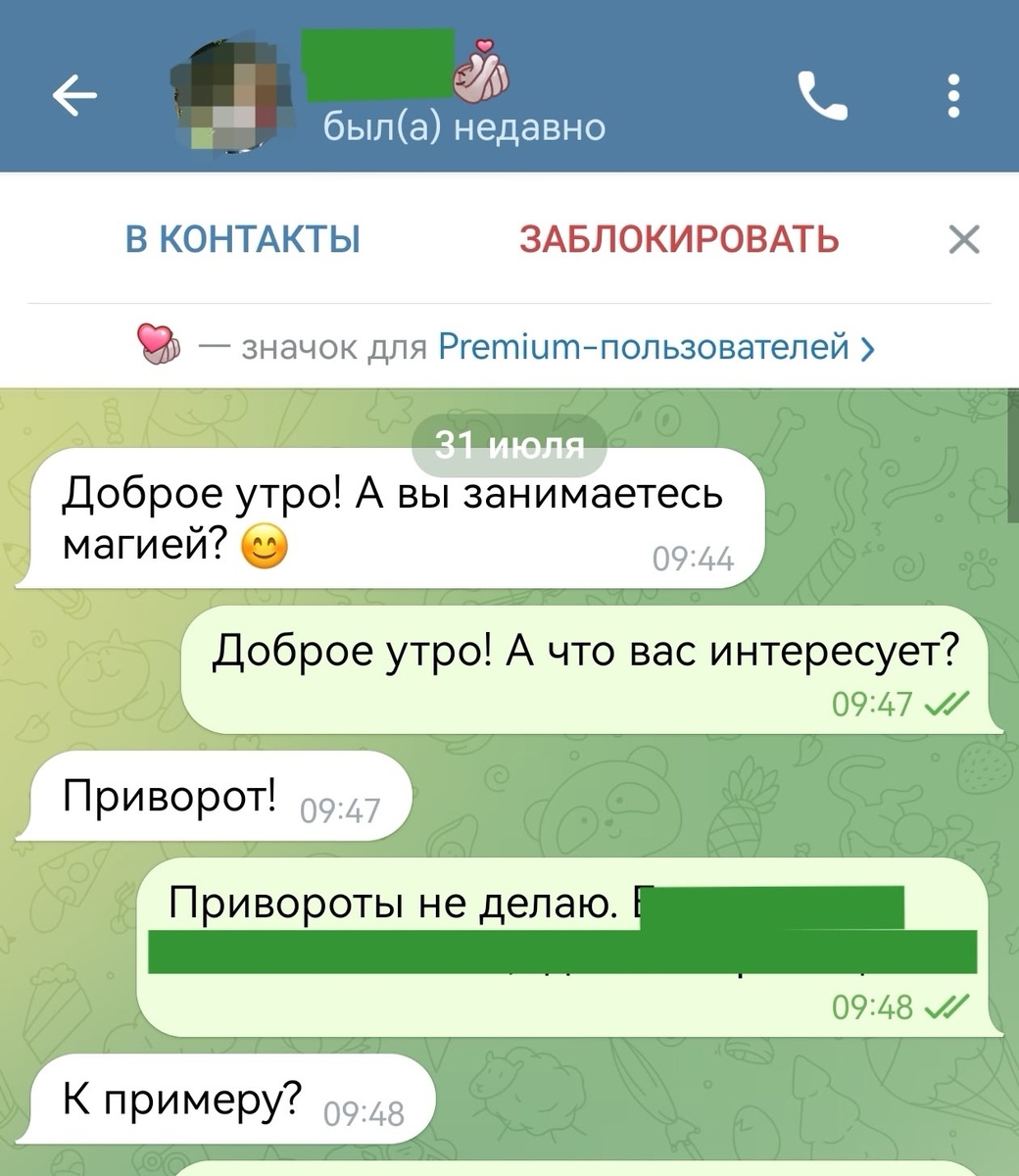 Недавно снова прилетел запрос: надо привернуть женщину. Итак, почему я не делаю привороты? Да, бывает человек загулял, значит не так уж и хорошо ему с другим... Подобное было и с моим клиентом, только в его случае - женщина. Порой, людьми правит чисто алчность в отношении другого человека по всем параметрам. И "Чтобы был/а рядом!!!" ("К ноге, Мухтар!"🙈). Против Воли другого человека, против задумок Высших Сил, люди совершают привороты. Привороты бывают разными, открой интернет - куча всего. Мужички или женщины бегут на кладбища, по Ведьмам, лепят любовку, лишь бы, лишь бы... Мол, есть привороты и без последствий, ЯКОБЫ. НО это до поры до времени, конечно же. Не бывает ничего просто так))). Ну не отстанет от вас нечисть....... Потомкам, если таковы уже имеются, лишь остаётся в будущем разгребать совершённую по глупости магию, сделанную каким-то сильно отчаявшимся предком...
