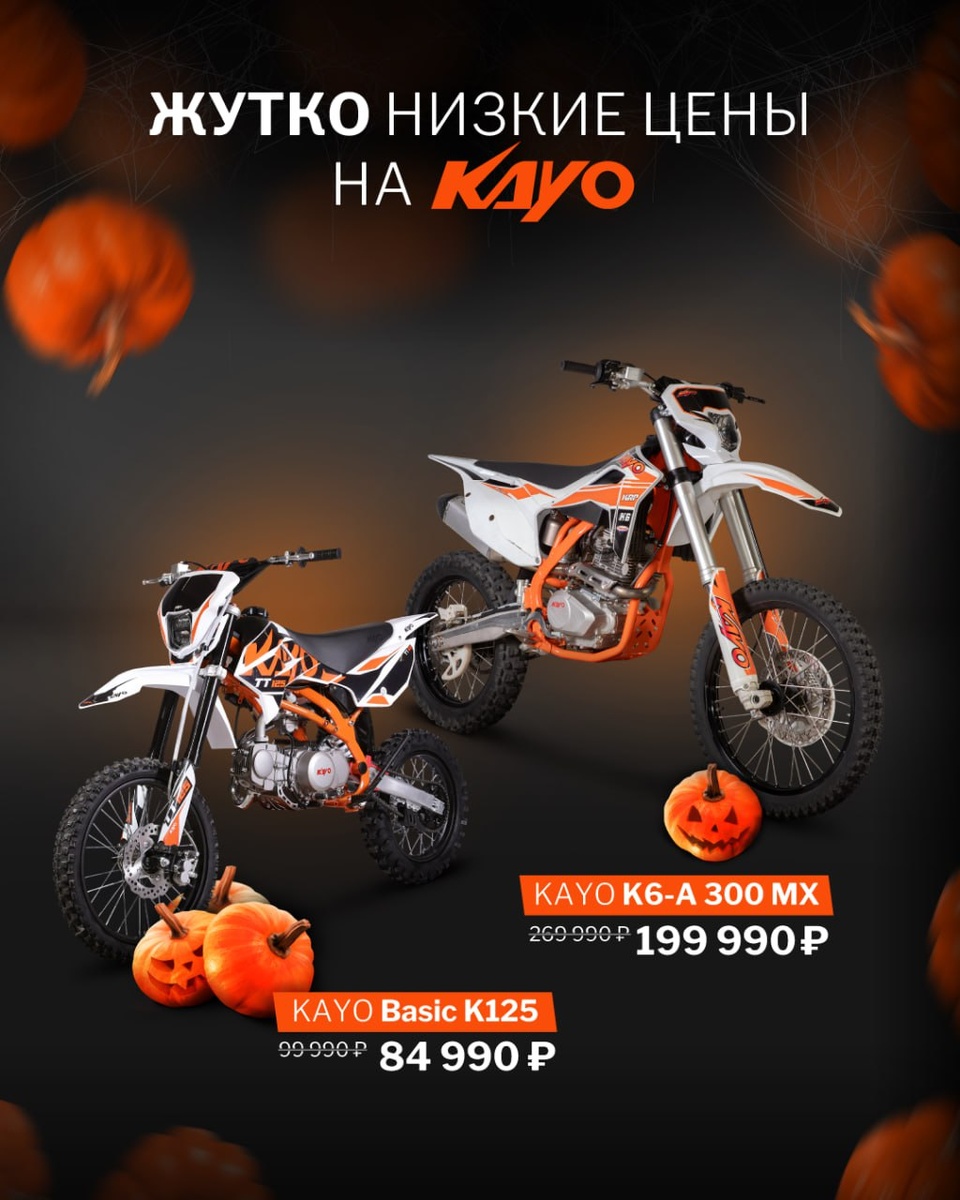 Жуууууть! как подешевели Каюхи😎 Мотоциклы: Легендарный KAYO K1 250 MX 134 990р KAYO T2 250 MX 144 990р KAYO K1-L 250 MX 124 990р Питбайки: KAYO KT50L 2T 99 990р Квадрициклы: KAYO AT110 124 990р KAYO AU125 139 990р KAYO AU150 CVT 164 990р 📍Северный тракт 23 📍Доватора 8В @rollingmoto_chel_bot спроси, как платить по 5 тыс в мес и катать на новеньком Kayo🔥 📞+73517111235