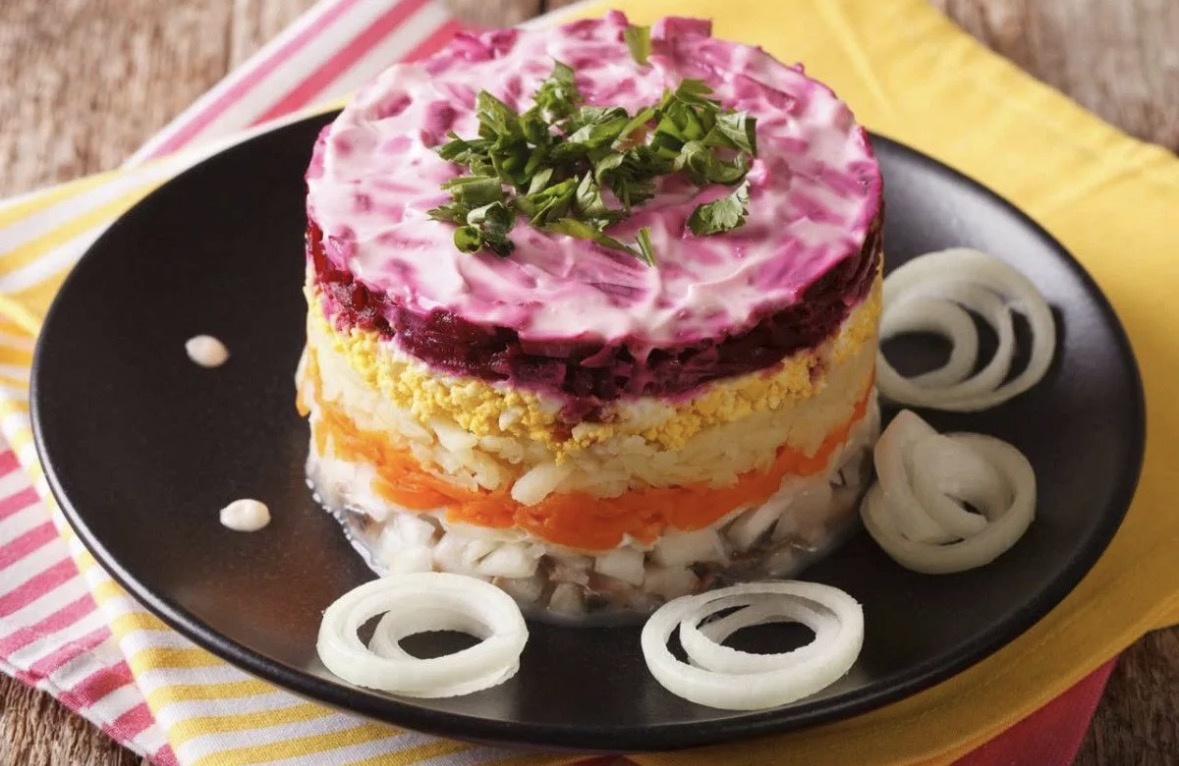 Это классический рецепт салата «Под шубой» — того самого, без которого не обходится ни один праздничный стол в странах СНГ. Рецепт проверен временем и миллионами хозяек. Салат «Под шубой»: Классический рецепт Секрет вкусного салата — в правильном балансе ингредиентов и сочности. Следуйте этим шагам, и у вас получится идеальный салат. Ингредиенты: (на большую порцию, для компании) · Сельдь – 1 крупная жирная соленая сельдь (или 2 средние) · Картофель – 3-4 шт. (среднего размера) · Морковь – 2-3 шт. (среднего размера) · Свекла – 2-3 шт. (среднего размера) · Лук репчатый – 1 крупная головка · Яйца – 4-5 шт. · Майонез – 200-300 г (по вкусу) · Уксус (9% или яблочный) – 1-2 ч.л. (для маринования лука, опционально) --- Пошаговый рецепт приготовления Шаг 1: Подготовка основных компонентов 1. Варим овощи и яйца. · Тщательно вымойте картофель, морковь и свеклу. Варите их в мундире до полной готовности. Это важно, чтобы они не напитались лишней водой и были вкусными. · Совет: Свеклу