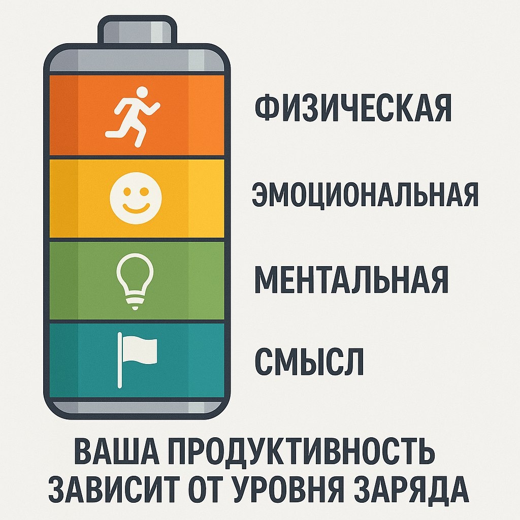 Не тайм-менеджмент, а энерджи-менеджмент: почему вы все время устали и ничего не успеваете Вы испробовали все техники тайм-менеджмента, расписали каждый час, но к вечеру все равно чувствуете себя как выжатый лимон и не можете выполнить и половины плана? Проблема не в времени, а в энергии. Время конечно и одинаково для всех, а вот уровень энергии — нет. Перестав управлять своей энергией, я совершил прорыв в личной эффективности. Циклы нашей продуктивности в течение дня: У каждого из нас есть свои биологические ритмы — хронотипы («жаворонок», «сова», «голубь»). Но в целом, у большинства людей пики энергии выглядят так: • Утро (9:00 - 12:00): Пик концентрации и аналитических способностей. Идеально для СЛОЖНЫХ задач («лягушек»). • Обеденный спад (13:00 - 16:00): Снижение активности. Лучшее время для РУТИНЫ, совещаний, административных задач. • Вечерний подъем (17:00 - 19:00): Второй, менее интенсивный пик. Хорош для КРЕАТИВНЫХ задач и планирования. Что крадет нашу энергию? Три главных «
