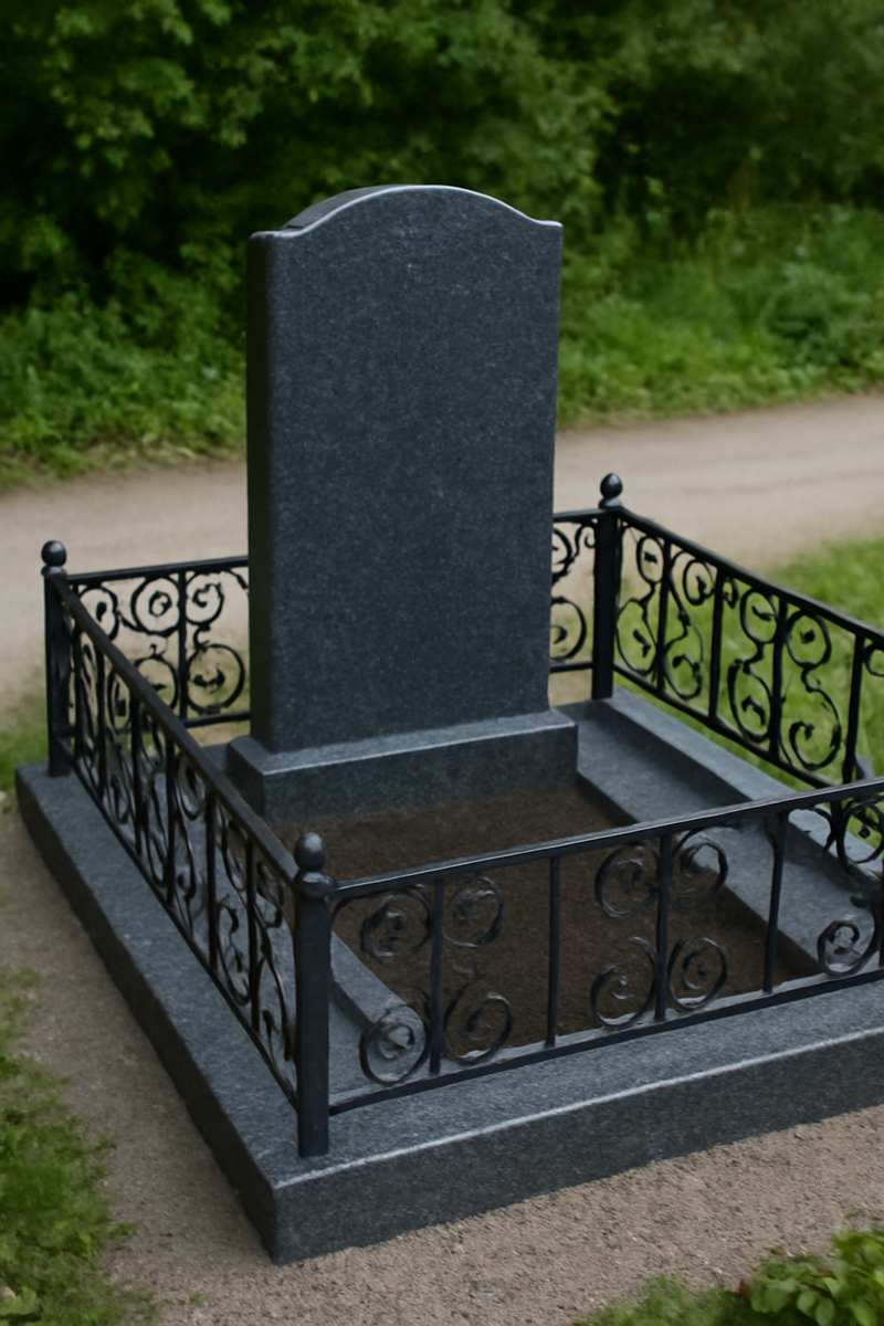 Благородное сочетание: гранитный цоколь и изысканная кованная ограда для вечного покоя