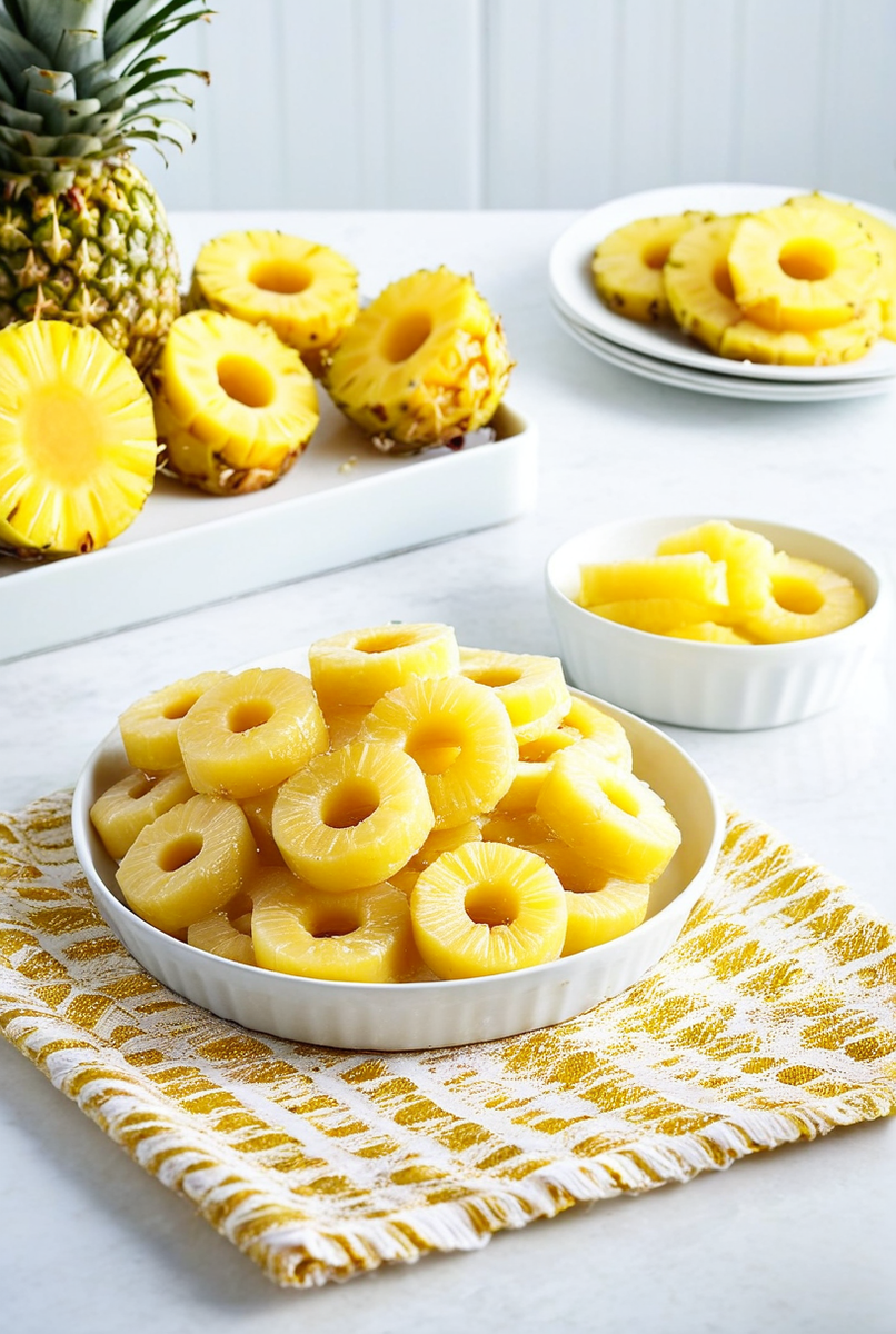 Особое место консервированные ананасы занимают в мире домашней выпечки. Кто не знает знаменитый перевернутый пирог с ананасами? Для его создания идеально подходят цельные ананасы кольцами, которые выкладываются на дно формы, карамелизуются в процессе выпекания и создают после переворачивания невероятно аппетитный и сочный верхний слой. Ананасы кусочками — великолепное дополнение для кексов, маффинов и бисквитных рулетов, делая тесто более влажным, нежным и ароматным. Они отлично гармонируют с кокосовой стружкой, грецкими орехами и сливочным кремом. Можно приготовить и открытые тарты, где кусочки ананаса выкладываются на основу из песочного теста и заливаются легким заварным кремом. Важно помнить, что использование продукта вместе с сиропом значительно повышает сладость и итоговую калорийность блюда.