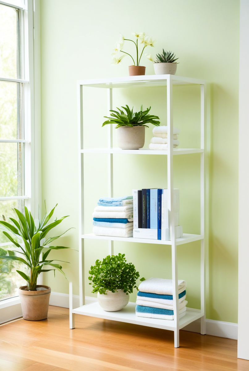 - Белая этажерка – универсальное решение для минимализма. Она словно растворяется в интерьере‚ добавляя ему легкости и света.