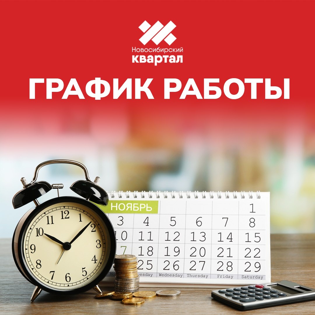 Новосибирский квартал информирует: Уважаемые клиенты, обратите внимание на изменение графика работы отделов продаж в праздничные дни. 🗓 1 ноября: 9:00 – 17:00 (все офисы продаж) 🗓 2, 3 ноября: выходные дни 🗓 4 ноября: 10:00 – 17:00 (дежурный день, работают офисы в мкр. Фламинго и Краснообск) С 5 ноября все офисы вернутся к обычному режиму работы. Планируйте свои визиты! Ждем вас в гости. Строим город, в котором хочется жить! Наш сайт: www.nsk-kvartal.ru