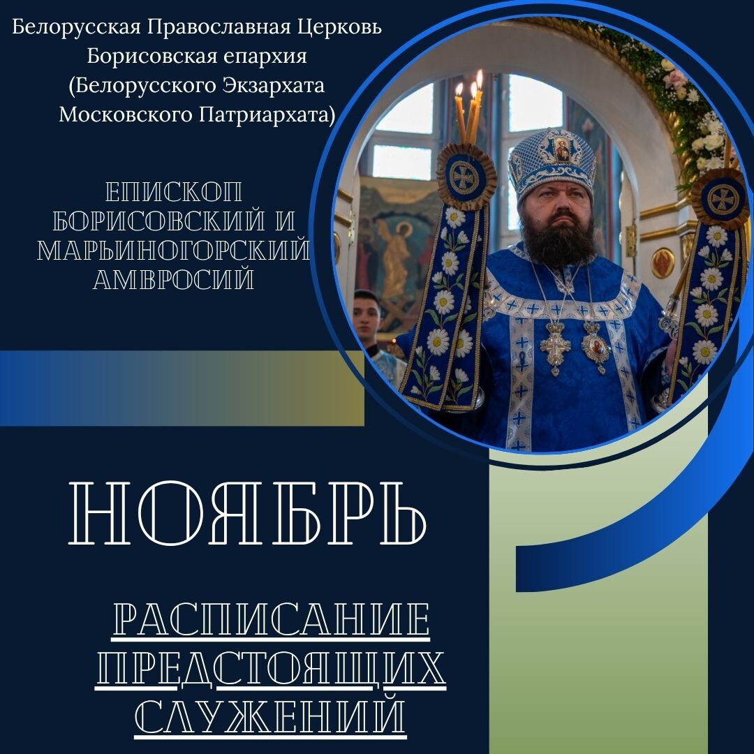 🙏🏻Предстоящее служение епископа Борисовского и Марьиногорского Амвросия🙏🏻 на ноября 2025 г