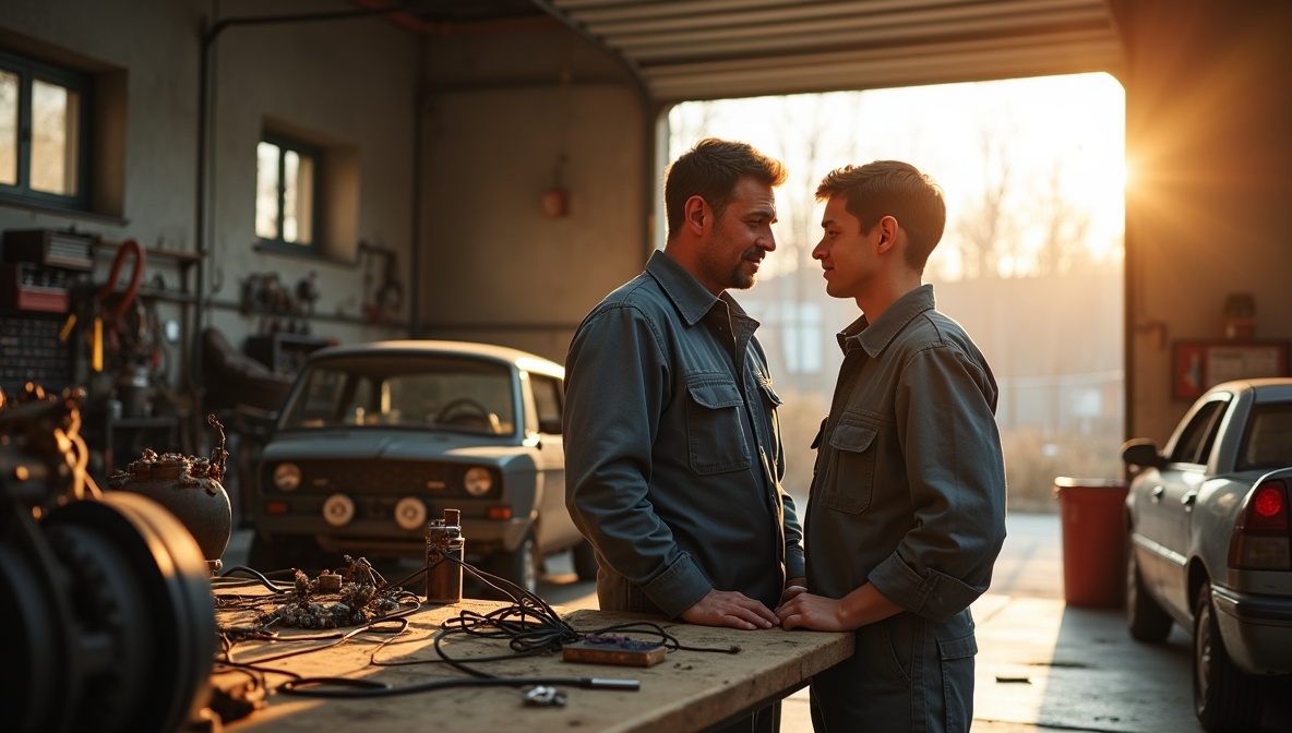Каждую субботу мы ездили в гараж – маленькое кирпичное царство, пахнущее бензином и металлом. Там отец преображался – из усталого, часто молчаливого мужчины превращался в вдохновенного мастера, который знал ответы на все вопросы мира. По крайней мере, так казалось мне тогда.