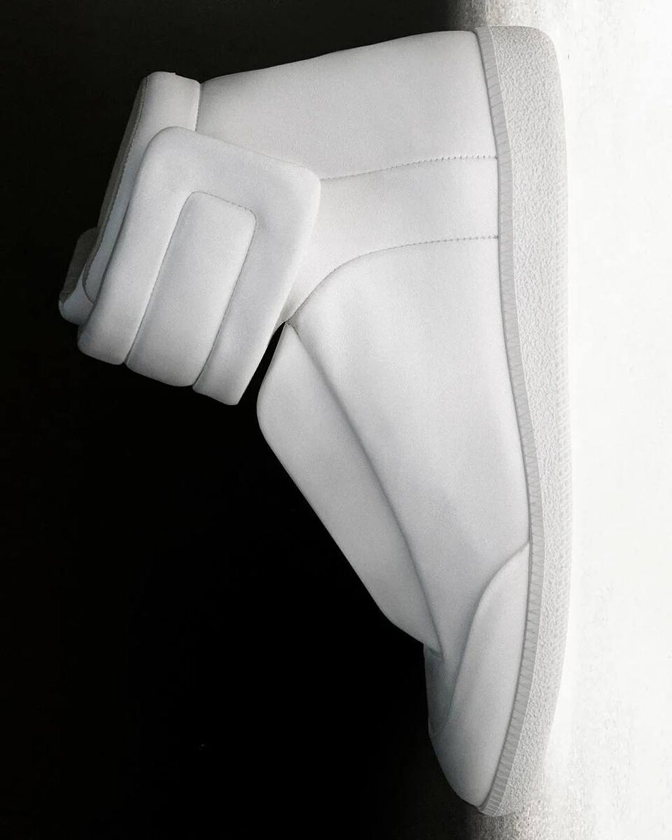 Всего пару недель назад дом объявил в Instagram о возвращении своей культовой линии Future, представив обновленную версию в черно-белой палитре. Запуск совпал с показом Maison Margiela SS26, где на подиуме появилась модель mirror glaze Future, а также другие выразительные образы — от обтягивающей кожи и рваных джинсов до брюк с подвернутыми штанинами.
