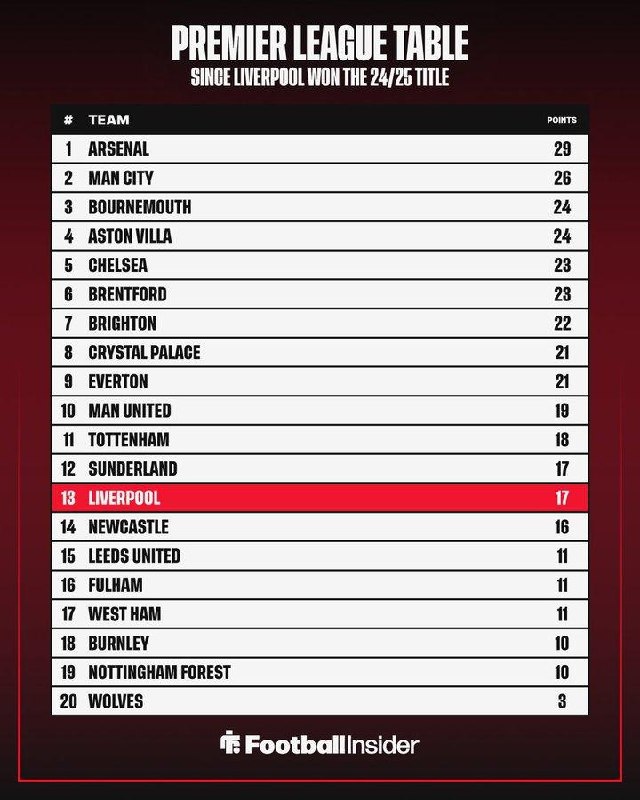 Таблица Премьер-Лиги с момента, как "Ливерпуль" оформил чемпионство в Премьер-Лиге 📊