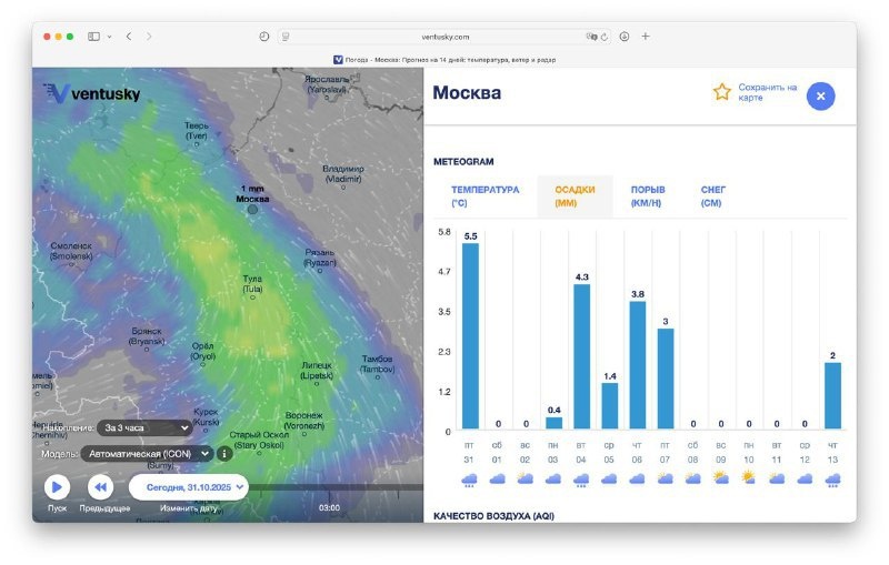 Сегодня в Москве ожидается ливень, который продлится почти весь день из-за мощного циклона. Влажность превысит 90%, а температура останется на уровне 6°C, создавая сырую и слегка холодную атмосферу. Не стоит расслабляться — по прогнозам, пасмурная погода сохранится как минимум до следующих выходных. Постмейкер - автоматическое ведение канала 🤖 Анимация | СhatGPT-4 | Помощь с резюме