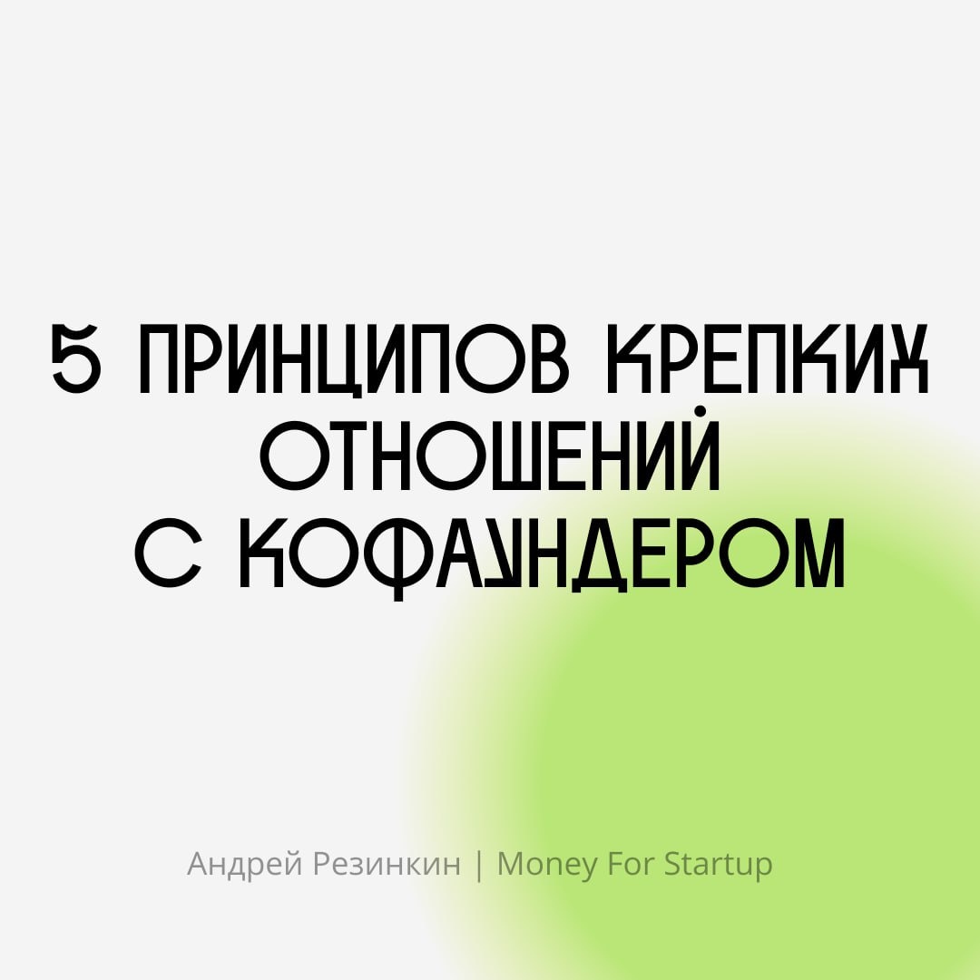 Как не поссориться с кофаундером, пока строите компанию Если бы кто-то составил топ причин закрытия стартапов, фраза «два кофаундера не смогли договориться» была бы в лидерах. Сюжет прост: сначала вы вместе ночами пилите MVP, а по итогу — спорите, за кем должно быть последнее слово, кто виноват и что делать. Можно ли этого избежать? Разумеется. Спойлер: снова придётся поработать. На карточках собрал 3 типичных причины фаундерских конфликтов и 5 принципов, которые помогут жить долго и счастливо. Как поддерживаете коннект с кофаундером вы? Уже применяете какие-то рекомендации из поста — или есть свои лайфхаки? Поделитесь опытом в комментариях Андрей Резинкин | Money For Startup
