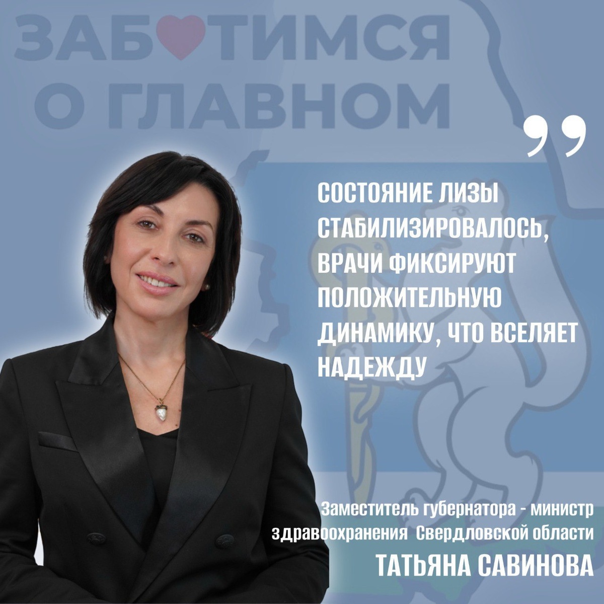 #ОтПервогоЛица «Когда ребёнок попадает в ДТП, это один из худших кошмаров не только для родителей, но и для любого неравнодушного человека. Недавно наш регион потрясла трагедия в Ревде, которая вмиг унесла жизни двух сестричек-школьниц. Жизнь ещё одной маленькой девочки, Лизы, оказалась под угрозой. Ребёнок получил закрытую черепно-мозговую травму, ушиб головного мозга, пострадала грудная клетка, лёгкие, были серьёзно повреждены кости ног. С первых минут поступления девочки в больницу я постоянно узнаю о её состоянии. 28 октября её перевезли из Ревды в Детскую городскую клиническую больницу №9 Екатеринбурга, где лучшие врачи отделения анестезиологии и реанимации двое суток находились рядом, оказывая малышке всю необходимую помощь. Их усилия принесли результат. Состояние девочки стабилизировалось, хотя и остаётся тяжёлым. Вчера её перевели в отделение травматологии и ортопедии, врачи фиксируют положительную динамику, что вселяет надежду. Девочке проводится комплексная консервативная