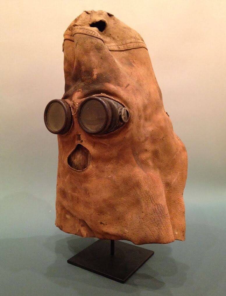 В 1930-х годах сварочные маски изготавливались из кожи, часто имели простую конструкцию и предназначались для защиты глаз и лица сварщика от искр, сварочного излучения и раскаленных частиц.