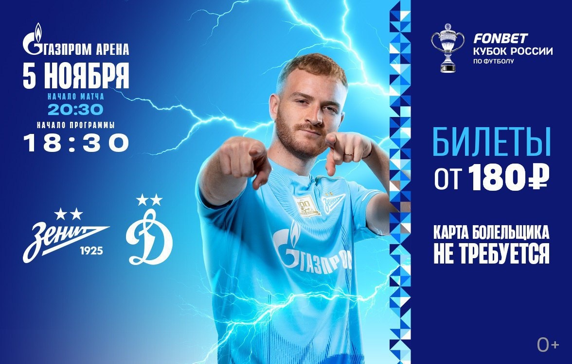 💙 Плей-офф Кубка России на «Газпром Арене»: «Зенит» – «Динамо Москва»! Скидка на билеты — 70