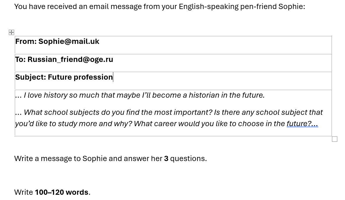 Письмо по теме: "Future profession", ОГЭ английский