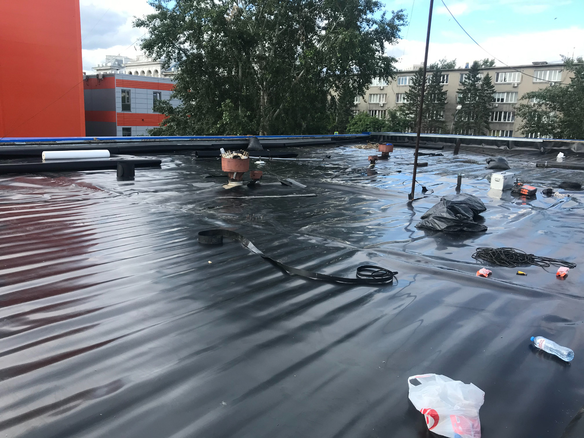 А есть ли надежное и недорогое покрытие для плоской кровли? Такое чтобы сделать и забыть. Стоимость покрытия для плоской кровли остаточно высока, что делать если нужно быстро отремонтировать или заменить существующее покрытие за сумму в полтора- два раза меньшую чем ПВХ, ТПО или наплавляемый материал? Какое то время назад у нас появились именно такие запросы - "Нужно срочно отремонтировать кровлю, много но денег не много" Мы нашли выход и на личном опыте поняли что он подходит не для всех типов кровли. Стоимость квадратного метра материала составляет на сегодня от 200 рублей, долговечность >50 лет. Это полиэтиленовая геомембрана. Этот материал применяется для гидроизоляции в грунте для полигонов ТБО,ТКО в недропользовании, гидротехническом строительстве и т.д. По органолептическим свойствам материал жесткий и упругий, мы использовали рулоны размером 5 на 50 м (250 м2). Сваривается между собой очень прочным герметичным швом. По периметру крепится металлической планкой и дюбель гвоздя