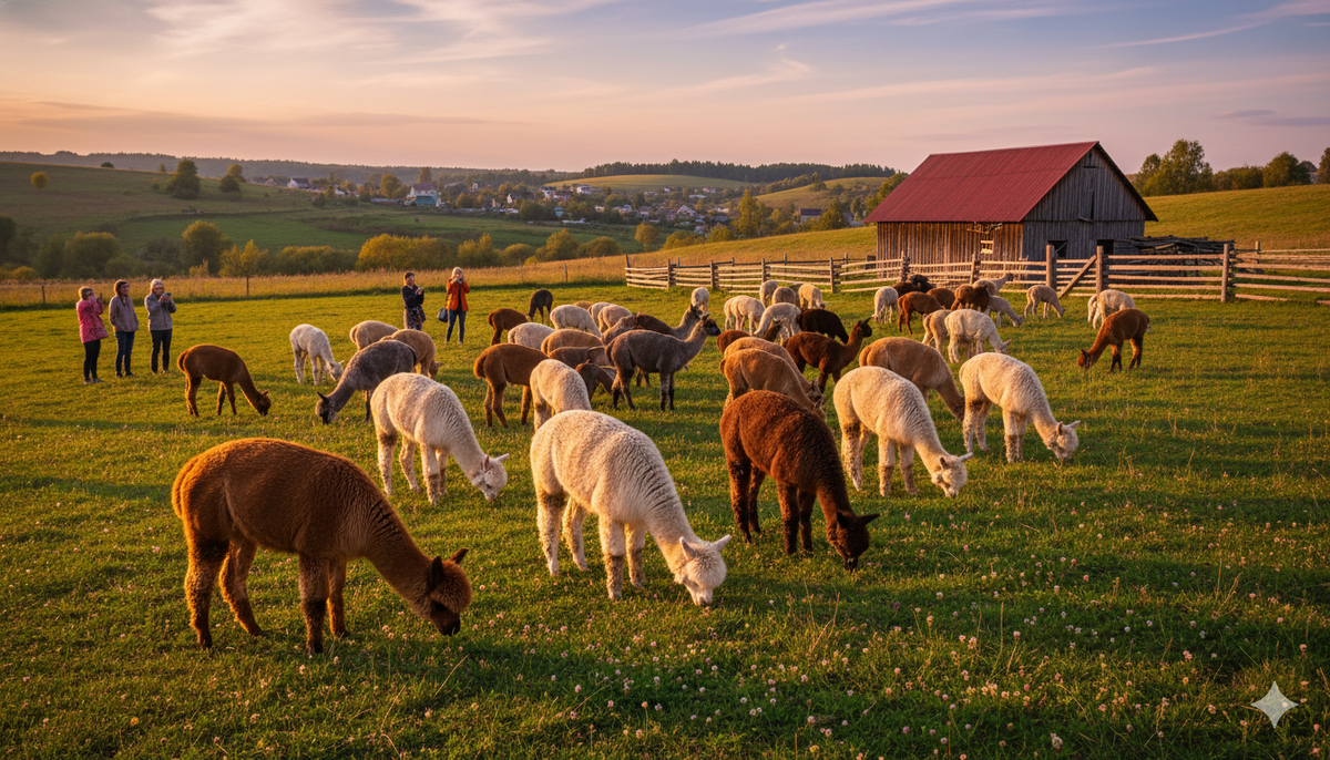 🦙 Ферма «Российские альпаки», Дмитровский район: общение с дружелюбными альпаками, экскурсии и фотосессии в живописном лесу.