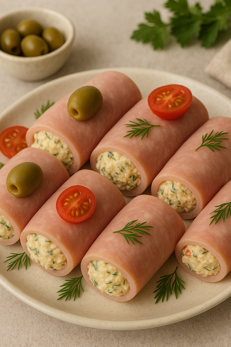 Каждый Новый год мы ищем рецепты, которые были бы одновременно простыми, быстрыми и эффектными на праздничном столе. Я перепробовала десятки закусок, но эти рулетики из ветчины с сыром всегда исчезают первыми. Они нежные, сытные и выглядят нарядно — при этом готовятся буквально за 15 минут. В этой статье я поделюсь всеми секретами: от выбора продуктов до того, как подать рулетики, чтобы они выглядели по-ресторанному. 1. Подготовьте начинку. В миске соедините сливочный сыр, натёртый твёрдый сыр и выдавленный чеснок. Добавьте мелко нарезанную зелень, при желании ложку майонеза, немного соли и перца. Хорошо перемешайте массу до однородности. 2. Подготовьте ветчину. Если ломтики ветчины слишком толстые, аккуратно раскатайте их скалкой — так рулетики будут мягче и легче сворачиваться. 3. Формируем рулетики. На край каждого ломтика выложите 1–1,5 чайной ложки начинки и аккуратно сверните рулетиком. Край можно зафиксировать зубочисткой или зелёной веточкой укропа. 4. Украшение и подача. Выл