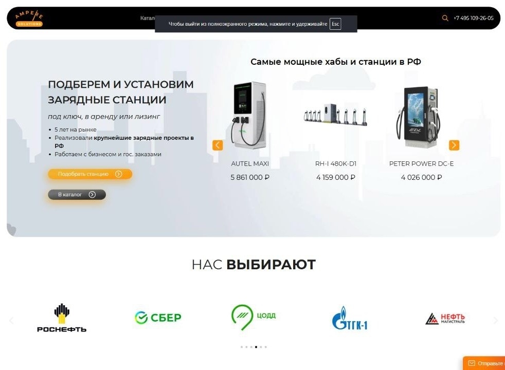 Заказчик: «Ampere Solutions» — компания, которая специализируется на подборе, поставке и обслуживанию современных зарядных станций для электромобилей.