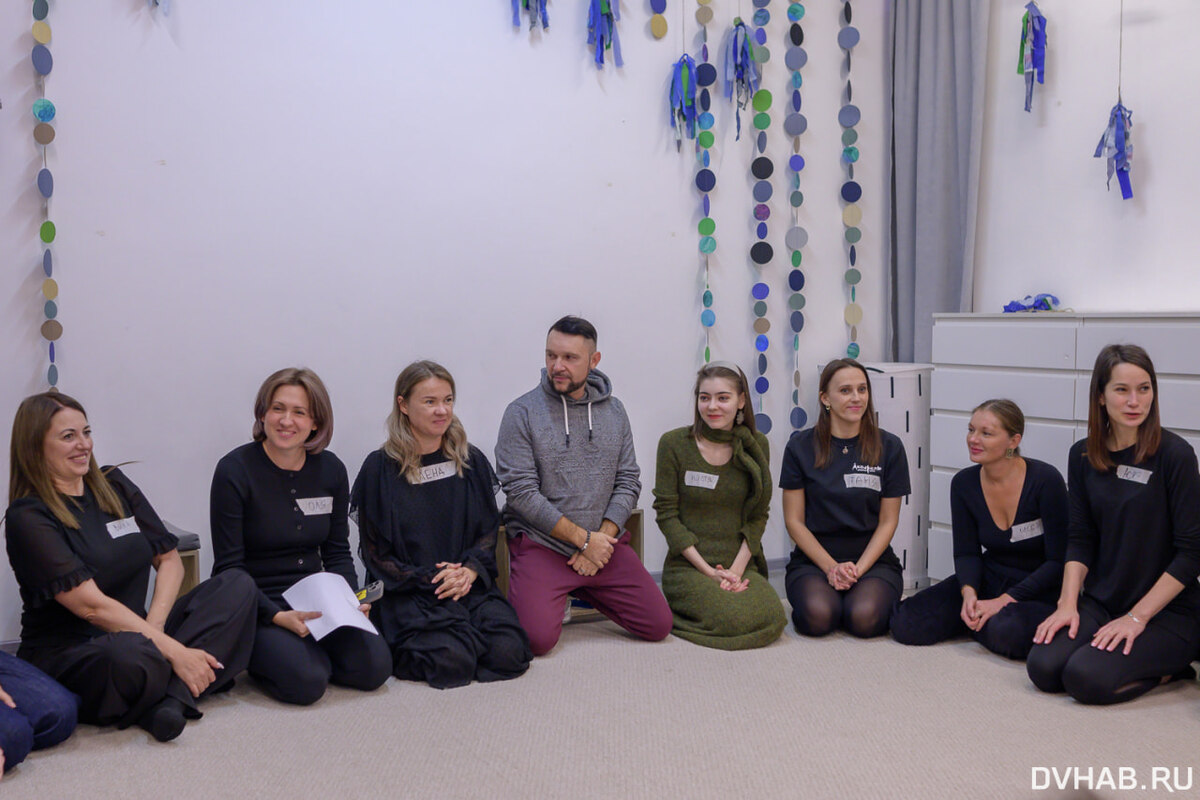 Накануне корреспонденты DVHAB посетили открытую репетицию плейбек-театра «Акварель» и узнали, как проходят спектакли, кто принимает в них участие, а также о проектах, которые команда организует не только в Хабаровске. Открытая репетиция состоялась в мастерской «КнижЖучки» и собрала около двух десятков человек, каждый из которых хотел попробовать себя в роли актера плейбек-театра. Началось все с небольшой разминки, которая проходила в формате активных игр. Сначала участникам нужно было представить, что их руки испачканы краской, и оставить отпечатки своих ладоней по всей студии. После чего новоиспеченные плейбекеры учились здороваться ногами и локтями, а также благодаря цветным подушкам познакомились друг с другом. После активной разминки участники учились отыгрывать эмоции. А позже даже выходили «на сцену», рассказывали свои истории через импровизированный спектакль. Плейбек-театру в апреле этого года исполнилось 10 лет. Это не обычный театр с заготовленной программой, репликами и сцен