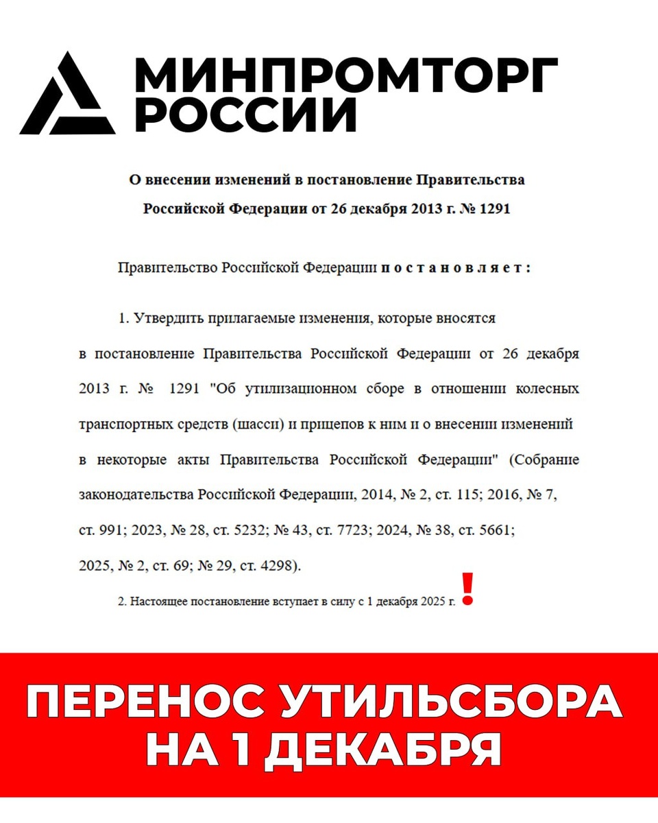 ΡΡΠ°Π²ΠΎΠΊ ΡΡΠΈΠ»ΡΡΠ±ΠΎΡΠ° Π΄Π»Ρ Π°Π²ΡΠΎΠΌΠΎΠ±ΠΈΠ»Π΅ΠΉ ΠΌΠΎΡΠ½Π΅Π΅ 160 Π».Ρ. β Ρ 1 Π½ΠΎΡΠ±ΡΡ Π½Π° 1 Π΄Π΅ΠΊΠ°Π±ΡΡ! β³ ΠΡΡΡ Π΅ΡΡ ΠΌΠ΅ΡΡΡ, ΡΡΠΎΠ±Ρ ΡΡΠΏΠ΅ΡΡ ΠΎΡΠΎΡΠΌΠΈΡΡ Π°Π²ΡΠΎ ΠΏΠΎ ΡΡΠ°ΡΡΠΌ ΡΠ°ΡΠΈΡΠ°ΠΌ. ΠΡΡΠΎΡΠ½ΠΈΠΊ: ΠΎΡΠΈΡΠΈΠ°Π»ΡΠ½ΡΠΉ ΠΏΠΎΡΡΠ°Π» regulation.gov.ru ΠΠ° ΠΏΠΎΡΡΠ°Π»Π΅ ΠΈΠ·ΠΌΠ΅Π½ΠΈΠ»ΡΡ ΡΠ΅ΠΊΡΡ ΠΏΠΎΡΡΠ°Π½ΠΎΠ²Π»Π΅Π½ΠΈΡ: Π’Π΅ΠΏΠ΅ΡΡ Π² Π΄ΠΎΠΊΡΠΌΠ΅Π½ΡΠ΅ ΡΡΡΠΎΠΊΠ° ΠΎ Π΄Π°ΡΠ΅ Π²ΡΡΡΠΏΠ»Π΅Π½ΠΈΡ Π² ΡΠΈΠ»Ρ ΠΈΠ·ΠΌΠ΅Π½Π΅Π½ΠΈΠΉ Π² ΠΏΠΎΡΡΠ°Π½ΠΎΠ²Π»Π΅Π½ΠΈΠ΅ ΠΡΠ°Π²ΠΈΡΠ΅Π»ΡΡΡΠ²Π° Π ΠΎΡΡΠΈΠΉΡΠΊΠΎΠΉ Π€Π΅Π΄Π΅ΡΠ°ΡΠΈΠΈ ΠΎΡ 26 Π΄Π΅ΠΊΠ°Π±ΡΡ 2013 Π³. β 1291 Π²ΡΠ³Π»ΡΠ΄ΠΈΡ ΡΠ°ΠΊ: "ΠΠ°ΡΡΠΎΡΡΠ΅Π΅ ΠΏΠΎΡΡΠ°Π½ΠΎΠ²Π»Π΅Π½ΠΈΠ΅ Π²ΡΡΡΠΏΠ°Π΅Ρ Π² ΡΠΈΠ»Ρ Ρ 1 Π΄Π΅ΠΊΠ°Π±ΡΡ 2025 Π³." ΠΠ±ΡΡΠ΄ΠΈΡΡ Π½ΠΎΠ²ΠΎΡΡΡ ΠΌΠΎΠΆΠ½ΠΎ Π² Π½Π°ΡΠ΅ΠΌ ΡΠ°ΡΠ΅: https://t.me/+3OYQx6LelyIxNWM6