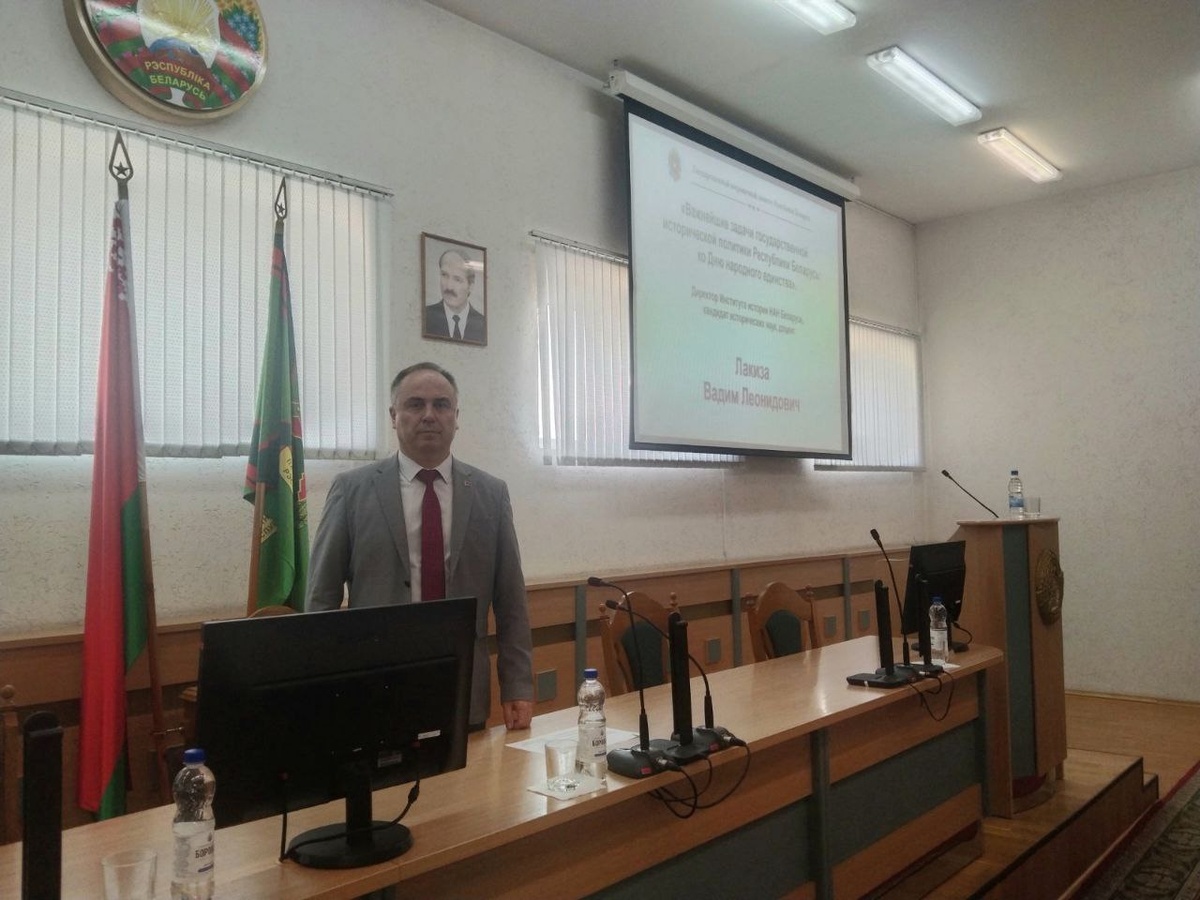 3 сентября 2025 г. директор Института истории НАН Беларуси В.Л.Лакиза в рамках проведения политической информации с офицерами Государственного пограничного комитета Республики Беларусь выступил с лекцией на тему "Важнейшие задачи государственной исторической политики Республики Беларусь: ко Дню народного единства"