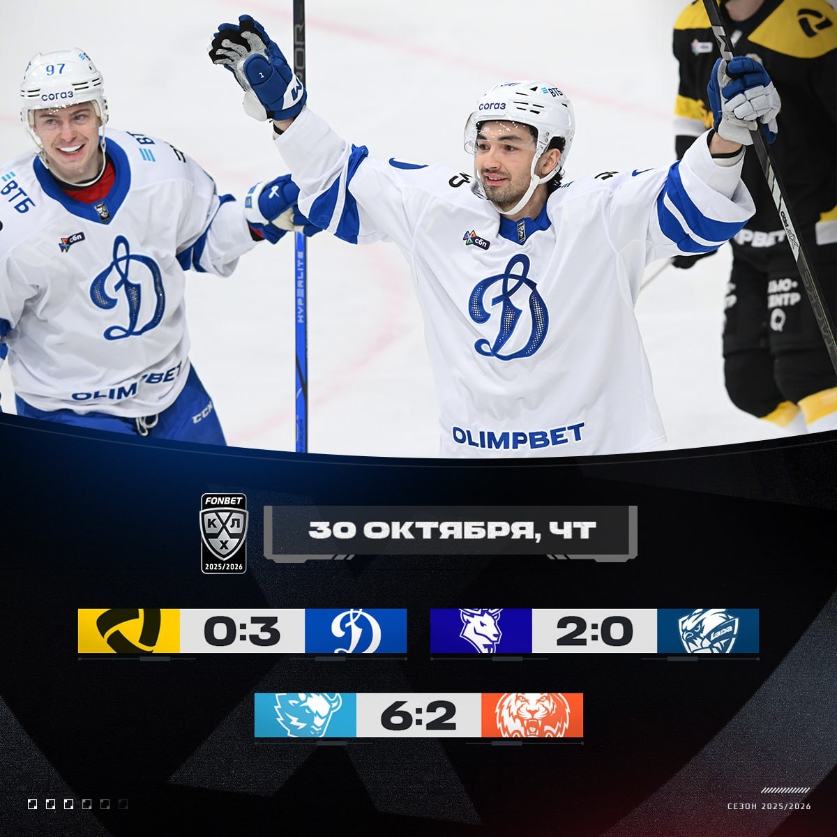Три матча — три разных истории. Но их объединяет одно: побеждают те, кто умеет держать темп, контролировать эмоции и использовать каждый шанс. Северсталь — Динамо Москва 0:3 Московское «Динамо» провело один из самых экономных матчей сезона. Всего 14 бросков в створ, и при этом три гола — идеальная иллюстрация хоккейного минимализма. Подъяпольский снова был непробиваем: уверенный, собранный, с холодным взглядом через маску — ещё один «сухарь» в активе. «Северсталь» старалась, имела моменты, но бело-голубые просто не дали пространства. Всё строго, хладнокровно и почти безупречно. Это тот случай, когда игра идёт под контроль со старта — и уже не отпускается ни на секунду. Торпедо — Лада 2:0 Нижегородцы начали мощно — первая шайба прилетела уже на 5-й минуте, и после этого команда лишь укрепляла контроль. Костин оформил второй «сухарь» вечера, став стеной в воротах. Хоккей «Торпедо» в этот день был похож на точную инженерную конструкцию — без излишеств, но с идеальным балансом.
